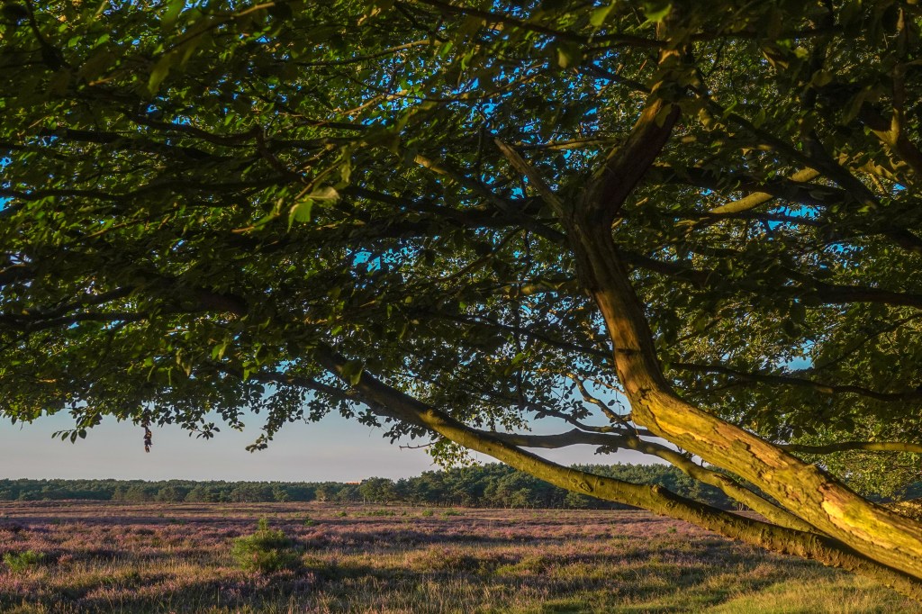 Ik word daar altijd wat weemoedig van, bloeiende heide en dat prachtige licht. De zomer loopt op de laatste benen, herfst neemt een aanloop. Ook een mooi jaargetijde, maar van mij hoeft het nog niet.