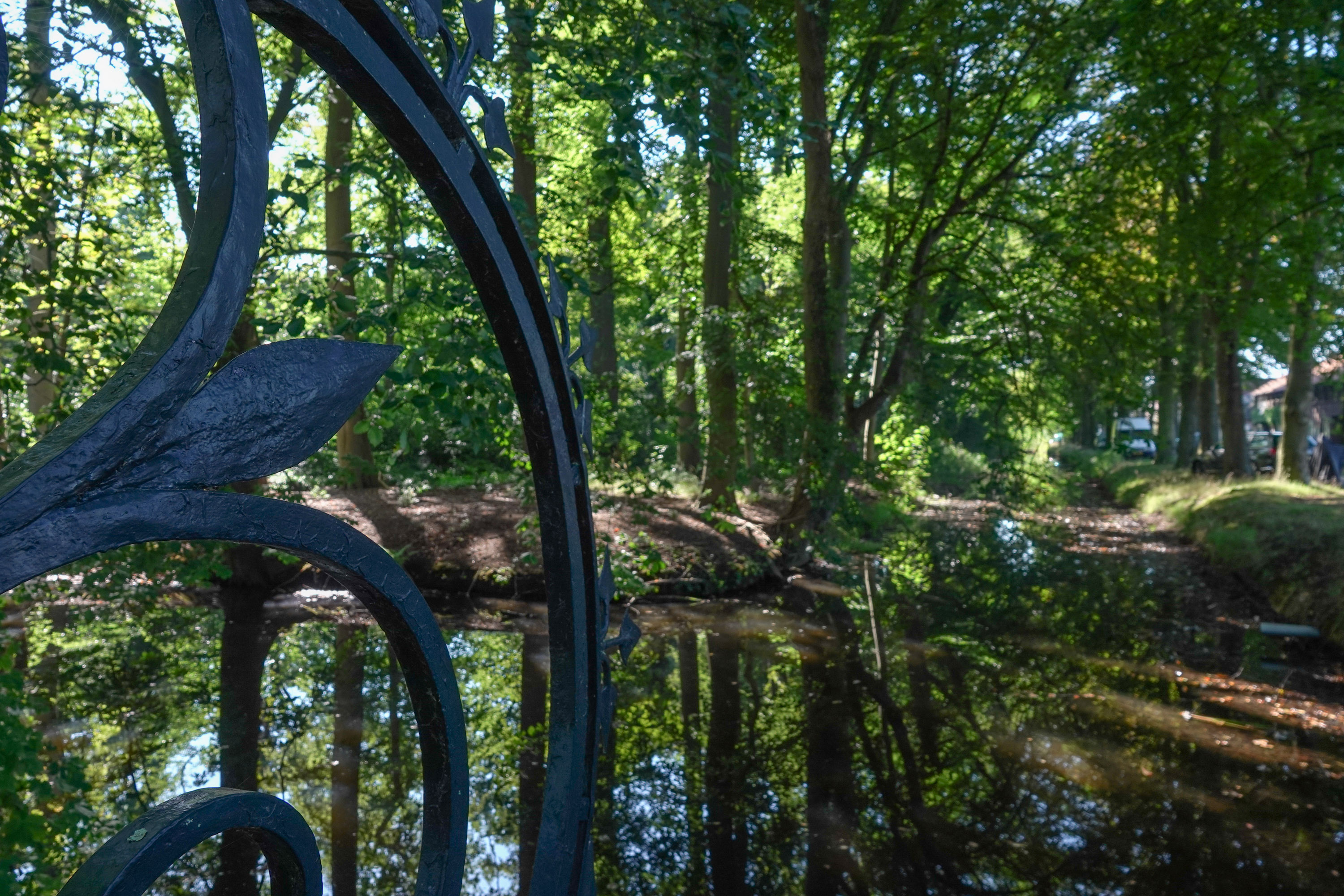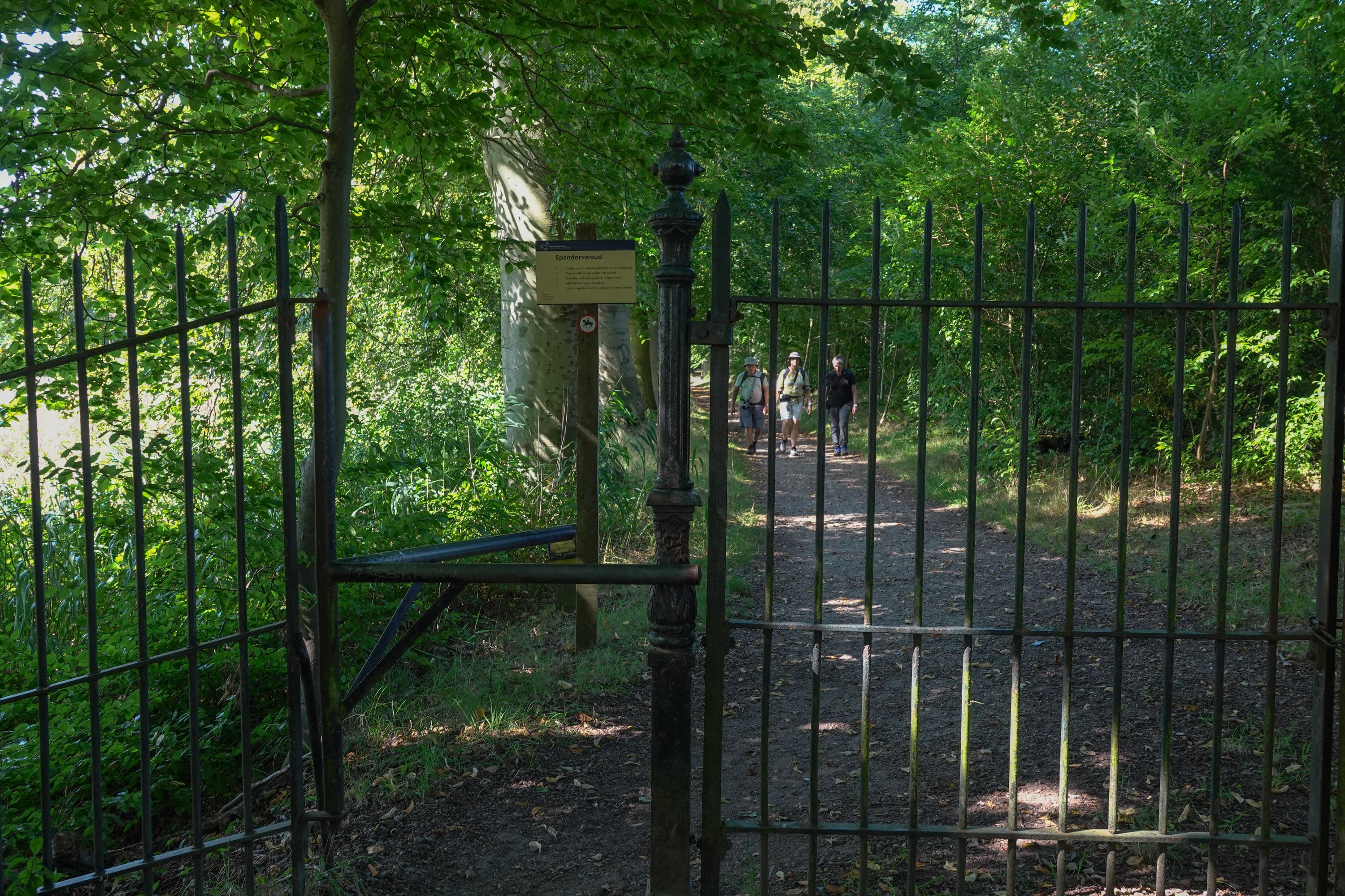 De bossen en parken zijn veelal vrij toegankelijk. Spanderswoud was de eerste buitenplaats op onze wandelroute. Aan de mooie smeedijzeren details, merk je dat je niet op een gewoon bospaadje loopt.