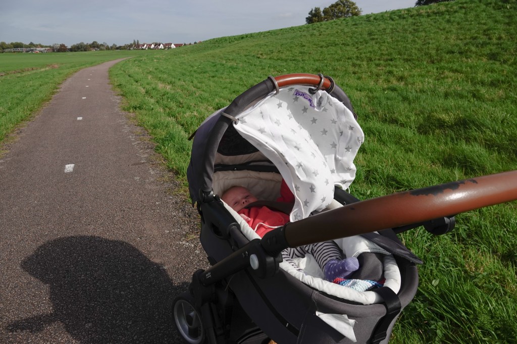 Vandaag was het de eerste vrijdag van oktober en die dag kreeg een heel andere invulling, dan de rest van mijn wekelijkse bezigheden. Ik zat opeens weer helemaal in de babytijd/periode. Dat komt, omdat mijn kleinzoon pas in november in aanmerking komt voor een plek op de crèche. Dat betekent voor mijn dochter, dat ze nog steeds niet kan werken na haar zwangerschap. Ik bood aan om die laatste maand voor mijn rekening te nemen en dan de vrijdagen op te passen. Dat houdt in, dat ik ’s morgens vóór half 8 op de fiets moet zitten, want om 8 uur moeten de ouders vertrekken en ben ik wisseling van de wacht. Maar zo’n vroeg begin van de dag vond ik geen straf. Het was een mooie ochtend, nog net voor zonsopkomst.