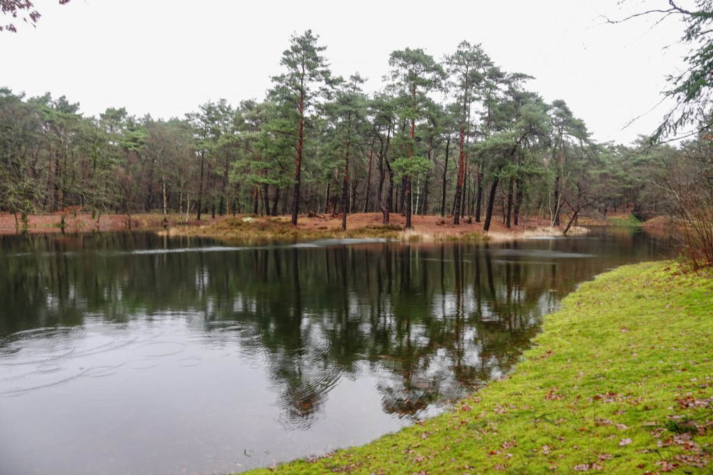 Het bleef niet lang droog. Het begon nu gewoon hard te regenen en dat hield niet meer op voordat we bij ons eindpunt aankwamen. Maar ondanks de regen had ik een voldaan gevoel over de wandeling. Het heeft wel iets om zo door de regen te lopen, mits je er goed op gekleed bent en dat was ik. Helaas heeft mijn camera wel wat waterschade opgelopen, dus dit verslag moet nog even wachten op de foto’s.