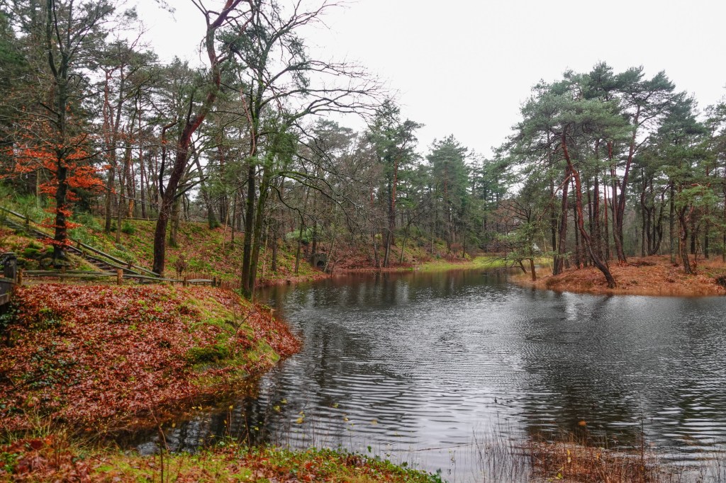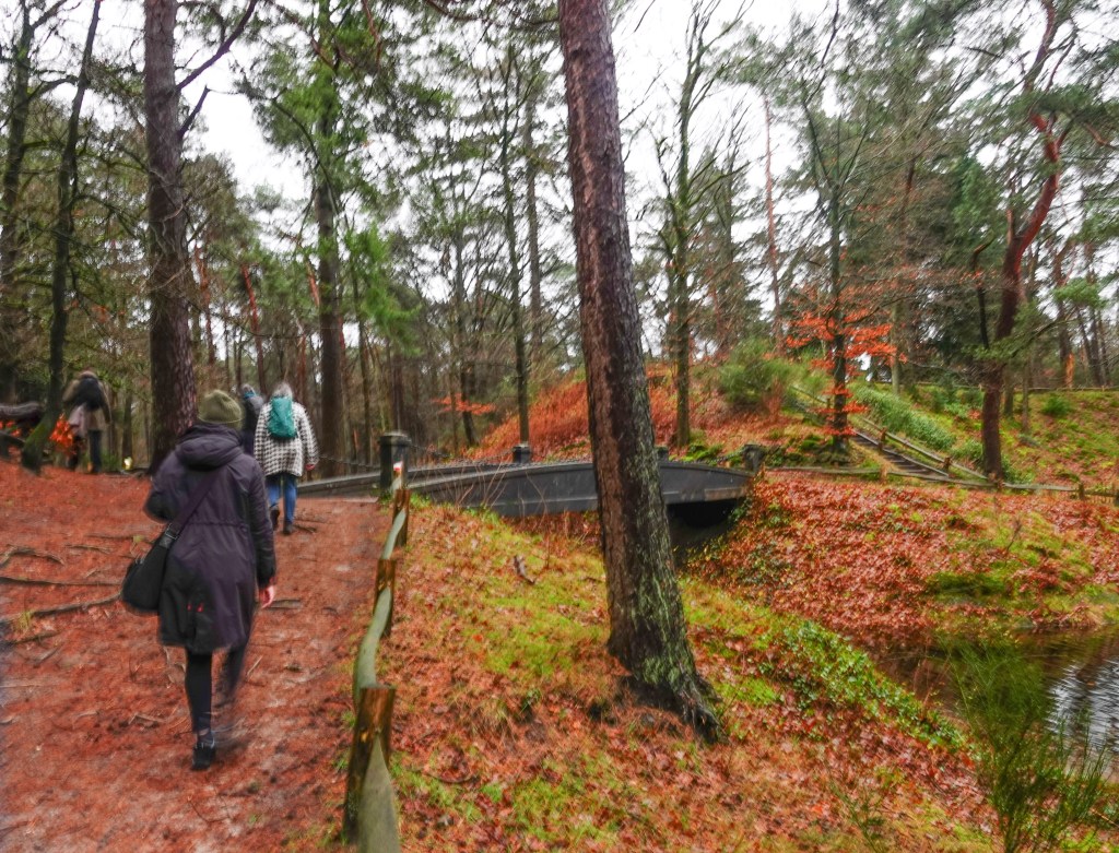 Toen ik uit de trein stapte begon het al licht te regenen. We volgden de bordjes van de NS wandeling van 15 km van Driebergen-Zeist naar station Maarn. We liepen over landgoed Heidestein.