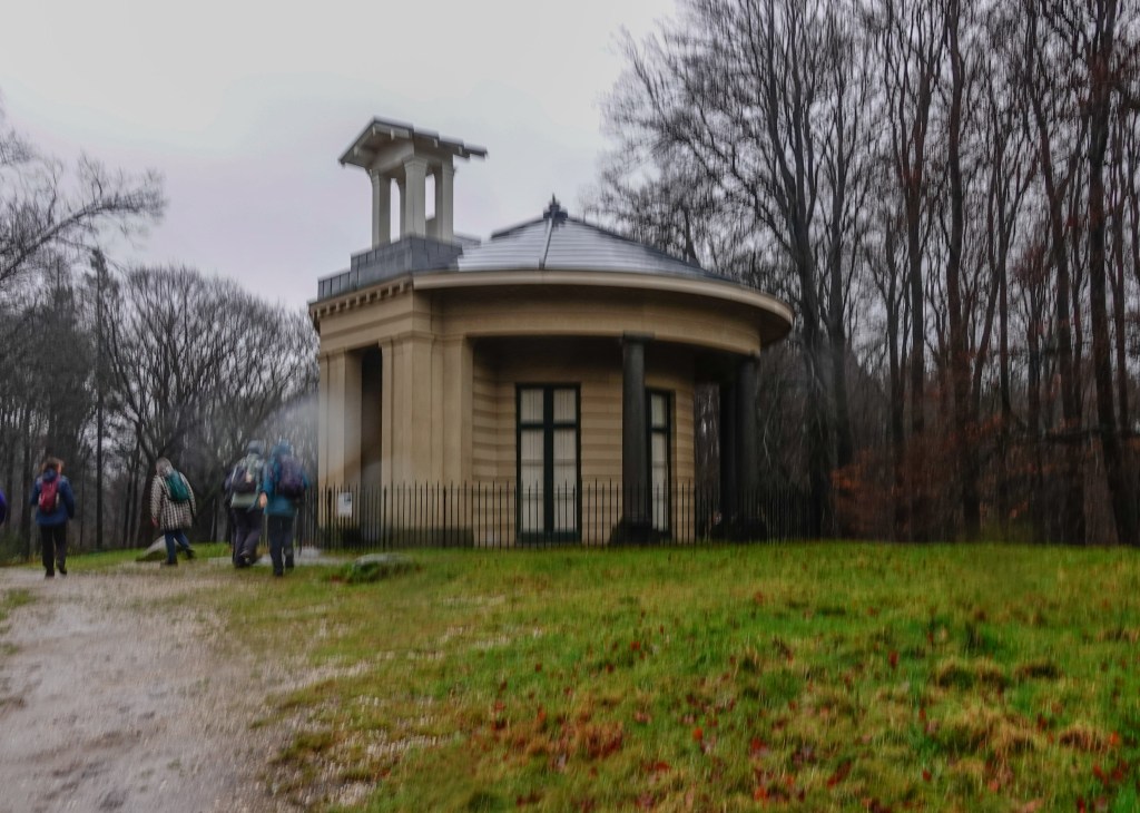 Toen we verderliepen was het warempel even droog. De theekoepel van Stoop was nog een markant punt in het landschap. Ooit was Bankier Stoop van plan om hier een buitenplaats aan te leggen. Het is bij de Theekoepel gebleven. Het ontwerp is van Zocher en de pilaren zijn afkomstig van de voormalige Koopmansbeurs in Amsterdam, die in 1836 werd afgebroken.