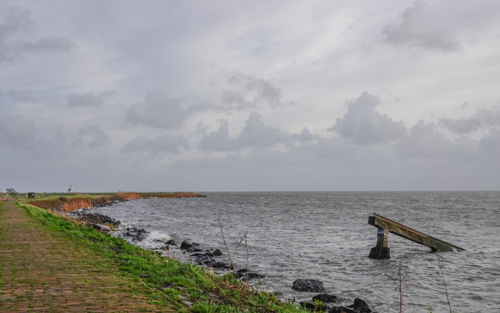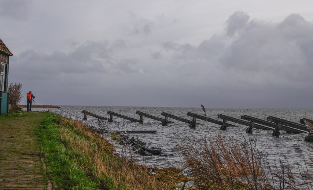 Aan de dijk bij de Rozewerf zien we de zogenaamde Twaalf apostelen liggen. Het zijn ijsbrekers, want deze plek van Marken kent in strenge winters het fenomeen van kruiend ijs.
