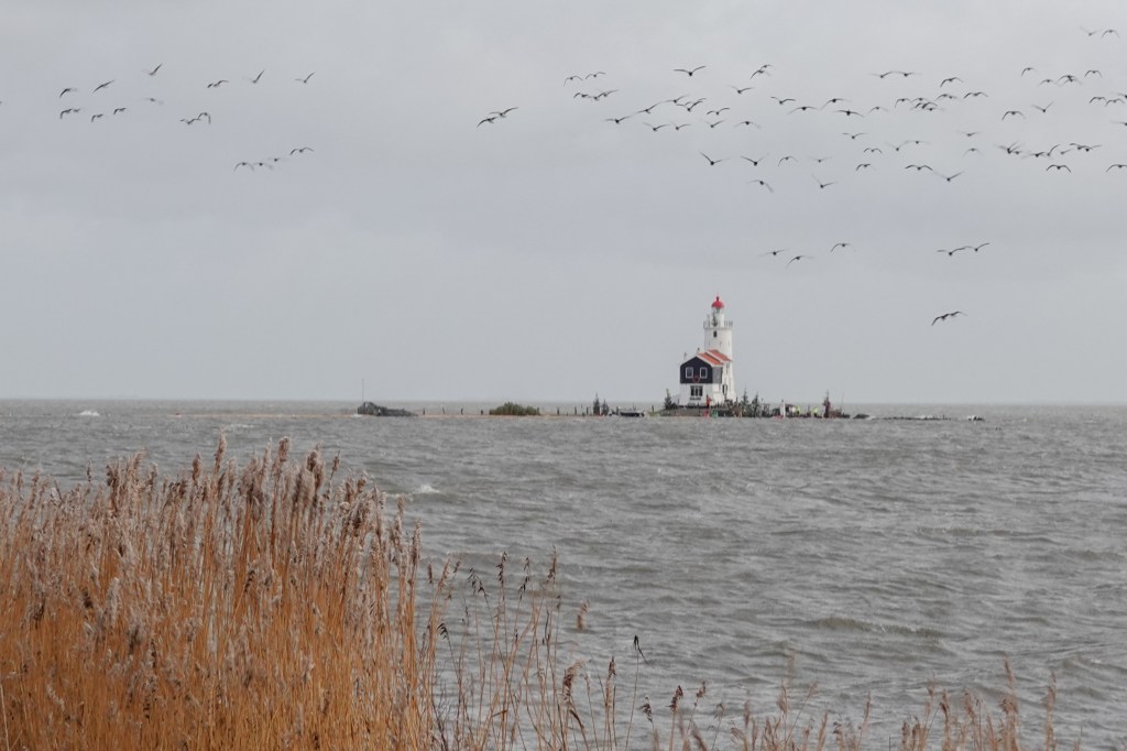 Het regende pijpenstelen en er stond een windkracht 6. Deze dag had ik een bezoek aan de IJsbrekers op Marken samen met fotomaatjes gepland staan, want begin januari gaan de karakteristieke en monumentale IJsbrekers voor 3 jaar de opslag in. Dit i.v.m. noodzakelijke dijkversterkingswerkzaamheden. De weersvoorspelling gaf een paar uurtjes droog aan, dus op hoop van zegen dan maar. En inderdaad hebben we geen druppel regen gehad. We liepen via de Grote werf (aanklikbaar)
