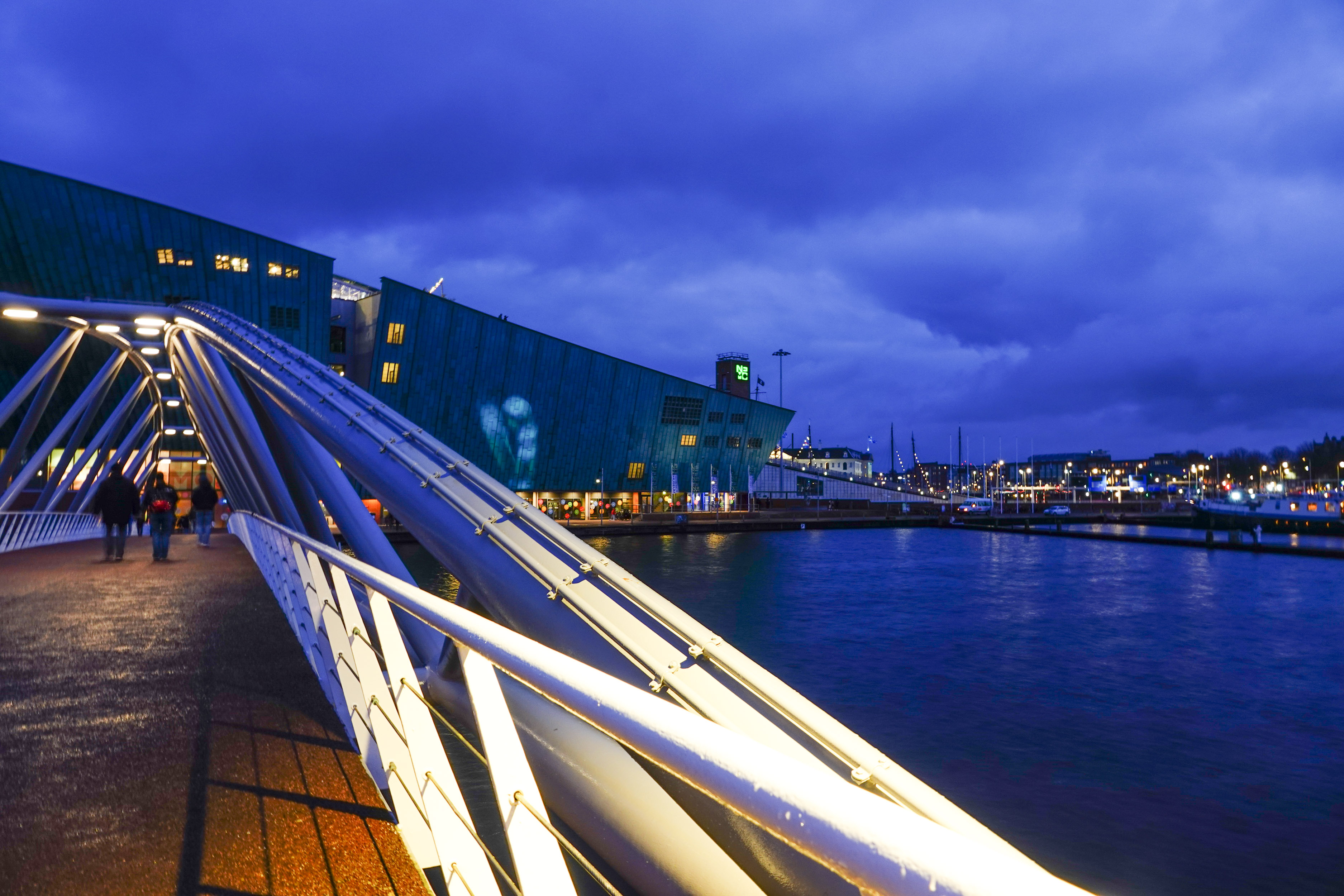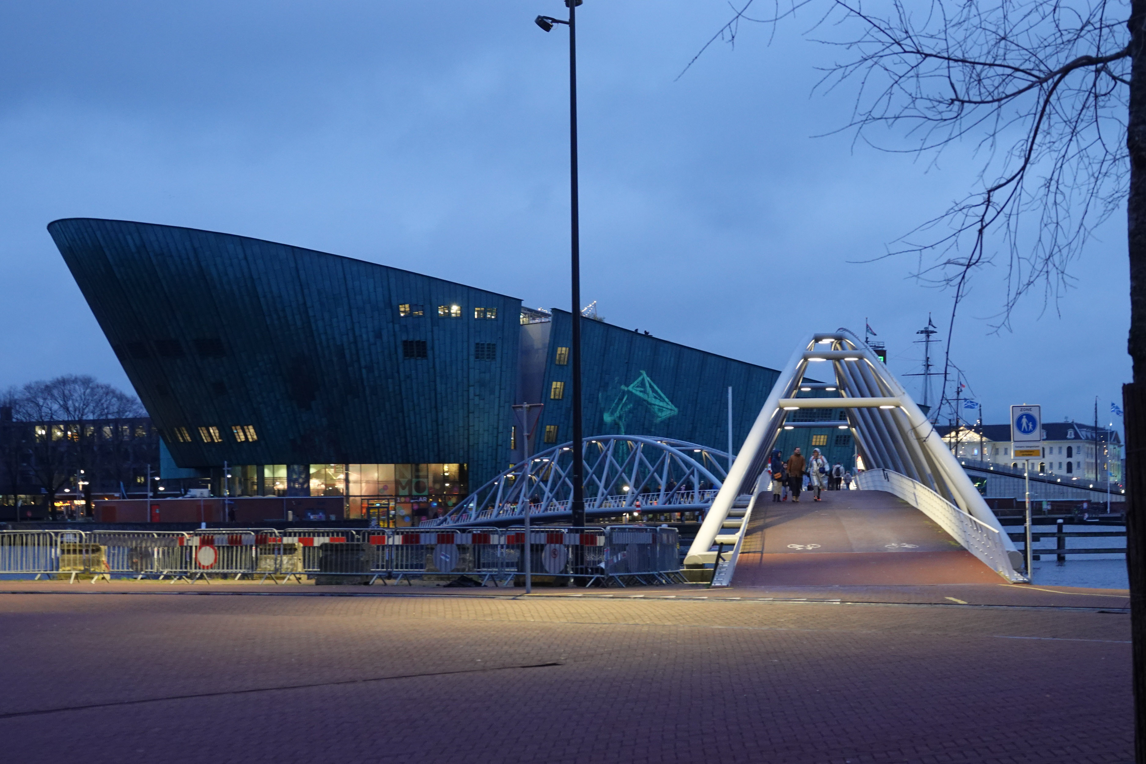 In een miezerregentje verzamelden ons stel fotomaatjes zich. Na een plan de campagne bij de koffie over de te nemen route was het warempel droog. Dat vergemakkelijkt het fotograferen, hoewel er een flinke wind stond op verschillende plekken en het avondlicht ook voor genoeg uitdaging zorgt. We liepen langs het IJ richting het nieuwe gebouw van Booking.com.