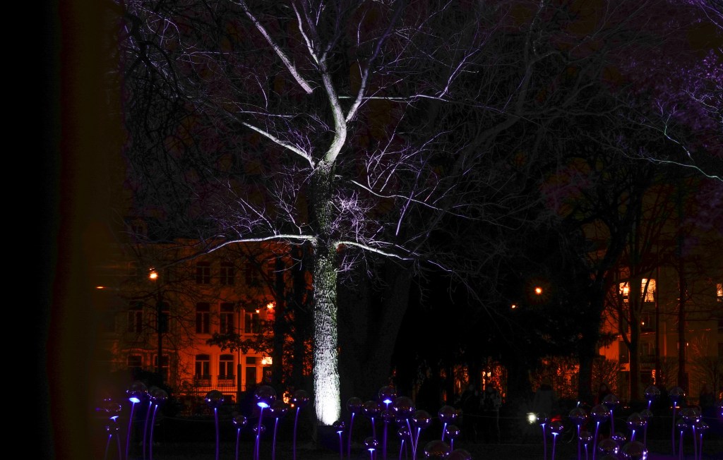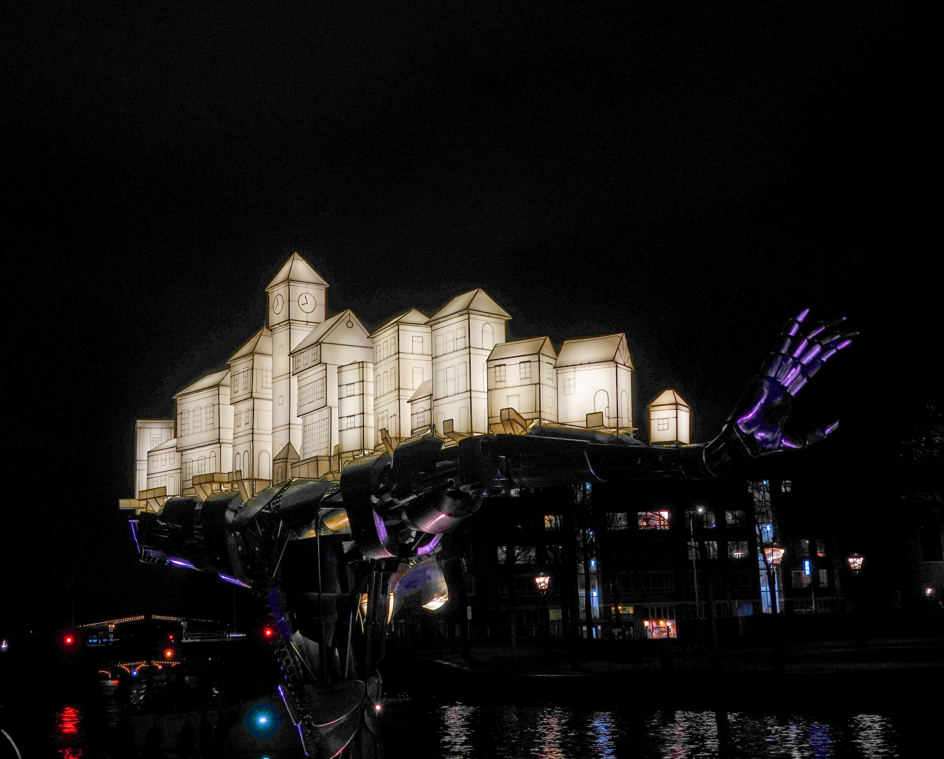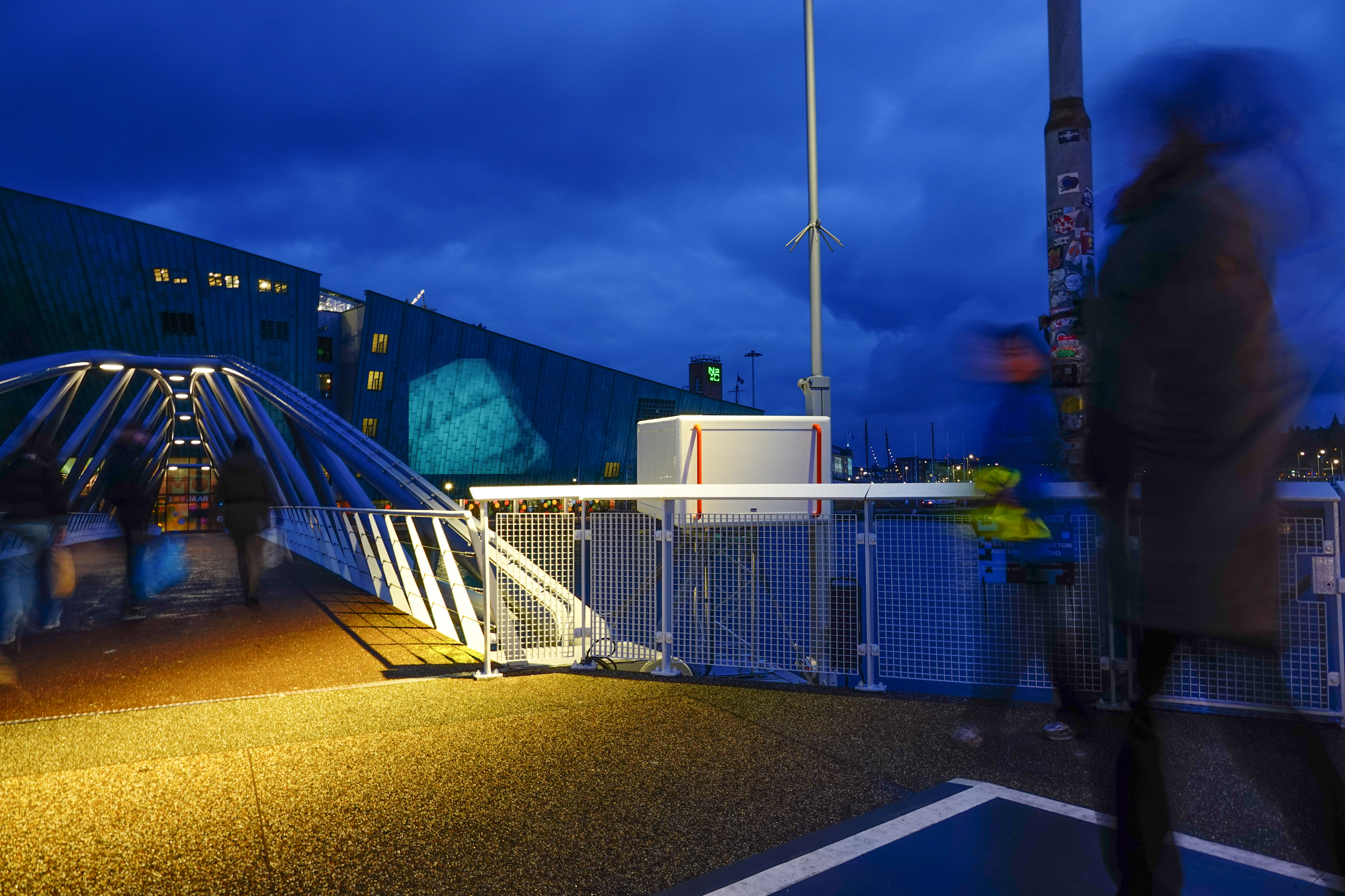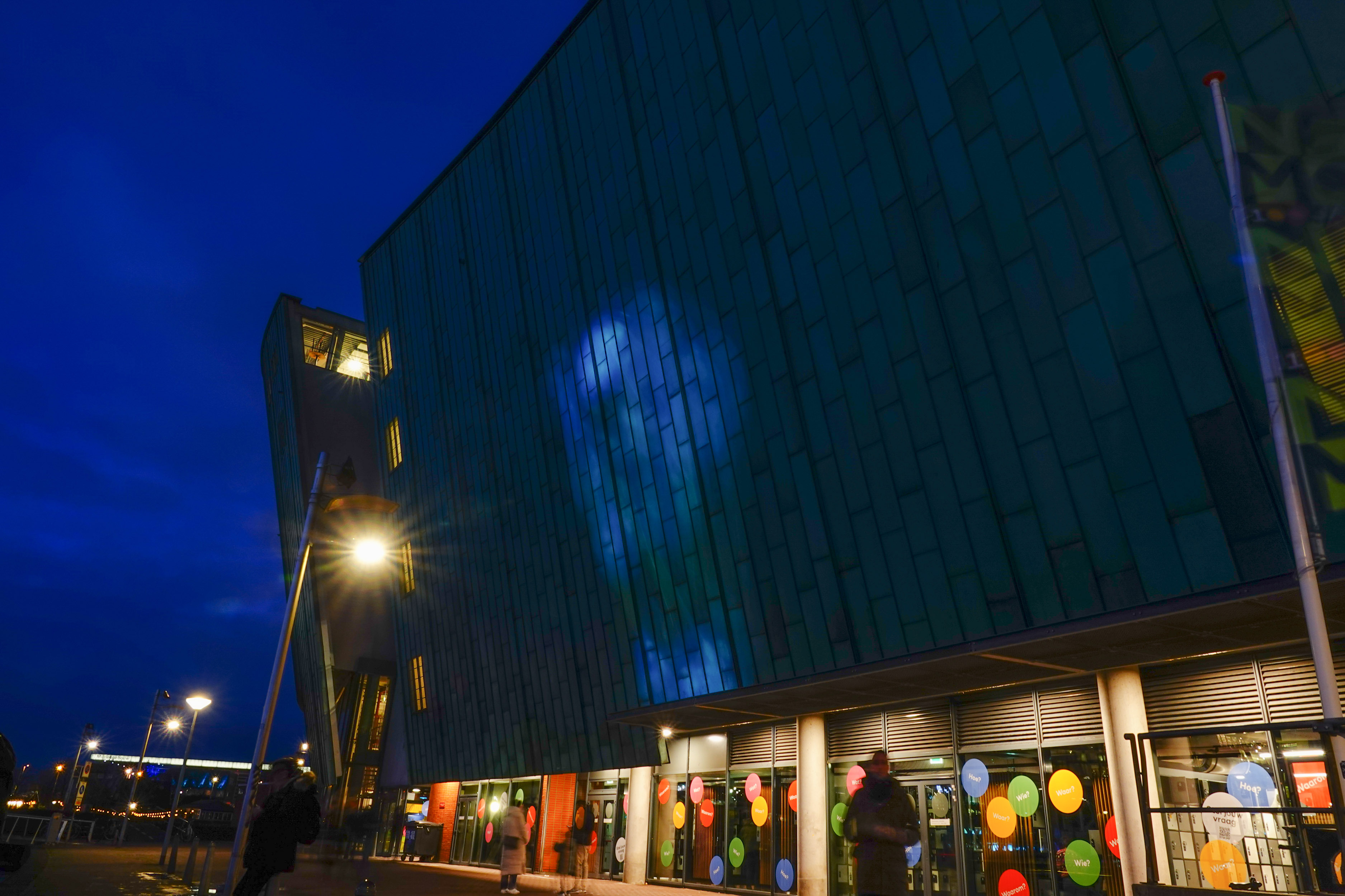 Op dat gebouw was een projectie te zien. Die werd veroorzaakt, doordat er mensen op een bepaalde plek op brug stonden te bewegen.