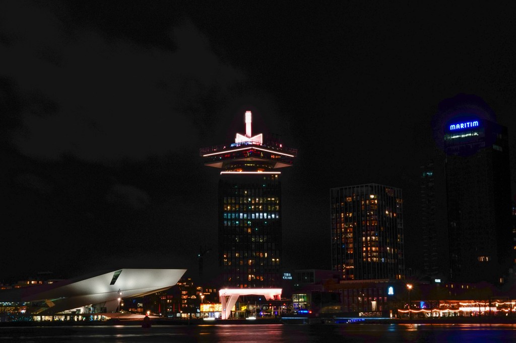 Hiervandaan heb je een goed zicht op de overkant met filmtheater Eye en de A’dam toren.