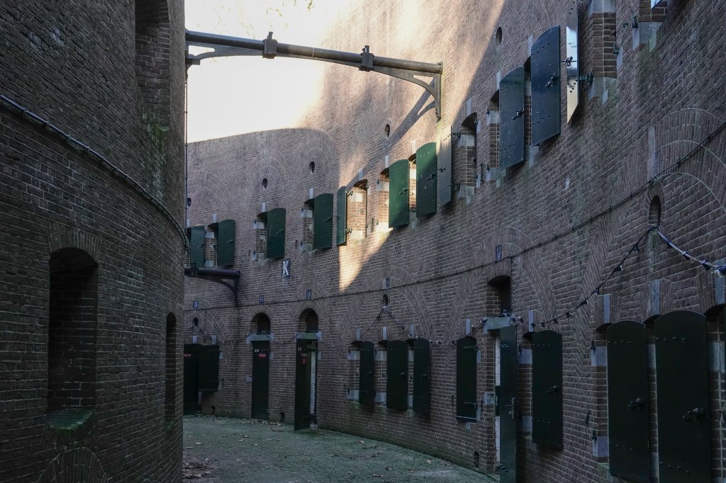We wandelden tussen de gebouwen door en zagen, dat het tegenwoordig dienst doet als kantoorruimte voor diverse bedrijven. De gemeente Houten kon het fort voor een symbolisch bedrag kopen van de provincie. Na de restauratie in 2018 werden het dus kantoren.