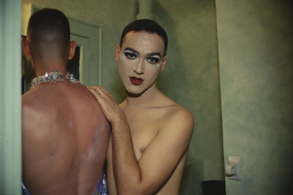 Je betrad een stikdonkere ruimte, waar je overal mensen ontwaarde, zittend of staand. Er was een scherm, waar een slideshow veel foto’s van Nan Goldin liet zien onder begeleiding van allerlei soorten popmuziek. Je mocht en kon er geen foto’s van maken. Ik vond het veelal indringende foto’s, die Nan maakte met haar kleinbeeldcamera. Onder fotografieliefhebbers is ze sinds de jaren tachtig vooral bekend door haar ‘visuele dagboek’ The Ballad of Sexual Depencence. Onverbloemd, eerlijk en zeldzaam intiem legt ze haar eigen leven en dat van haar vrienden in de undergroundscene van New York vast: in bed, in bad, op feestjes, in bars en bordelen, verliefd, verdrietig, met drank en drugs, in auto’s in een liefdevolle omhelzing, of met duidelijke sporen van huiselijk geweld op het lichaam. Ze kan er zelf bijna niet meer naar kijken, zegt ze. Bijna al haar goede vrienden uit die tijd zijn dood, de meesten overleden aan aids.