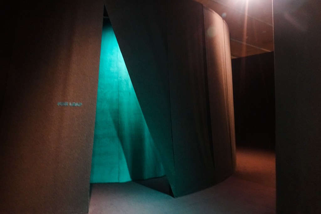 Er werd gewerkt met het reserveren van een tijdsslot. Dat maak je niet veel meer mee in musea, maar hier bleek het inderdaad geen overbodige luxe. Ik had me slecht ingelezen en laat me graag verrassen. Nou, dat gebeurde hier wel degelijk. Het was namelijk niet een gewone expositie met foto’s ingelijst aan de wand. Nee je kwam binnen in een schaars verlichte hal, waar diverse tentachtige ruimtes opdoemden, paviljoens genaamd. Ze hadden naast de ingang een naambordje en wat informatie over wat er binnen te zien was.