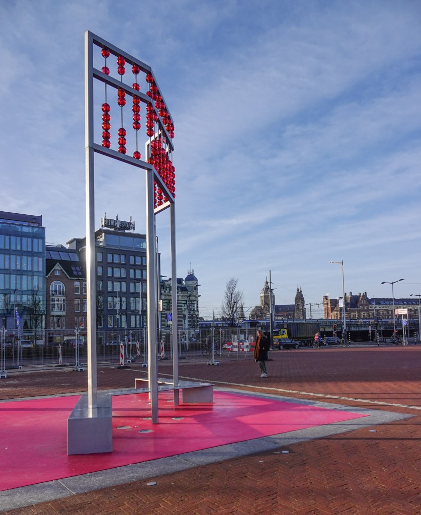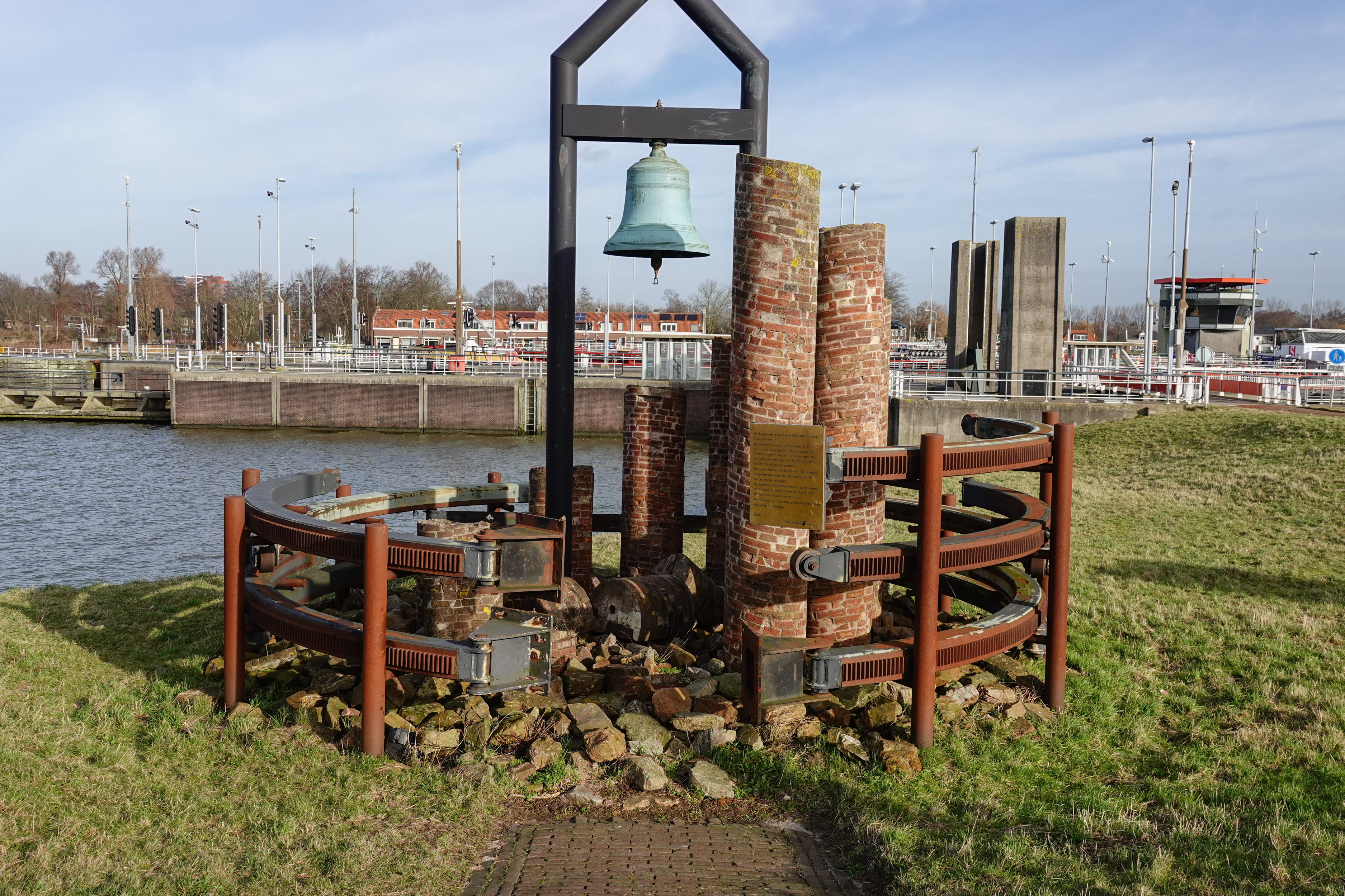 Aan de overkant passeerden we een monument, dat een herinnering is aan de oude Oranjesluizen.