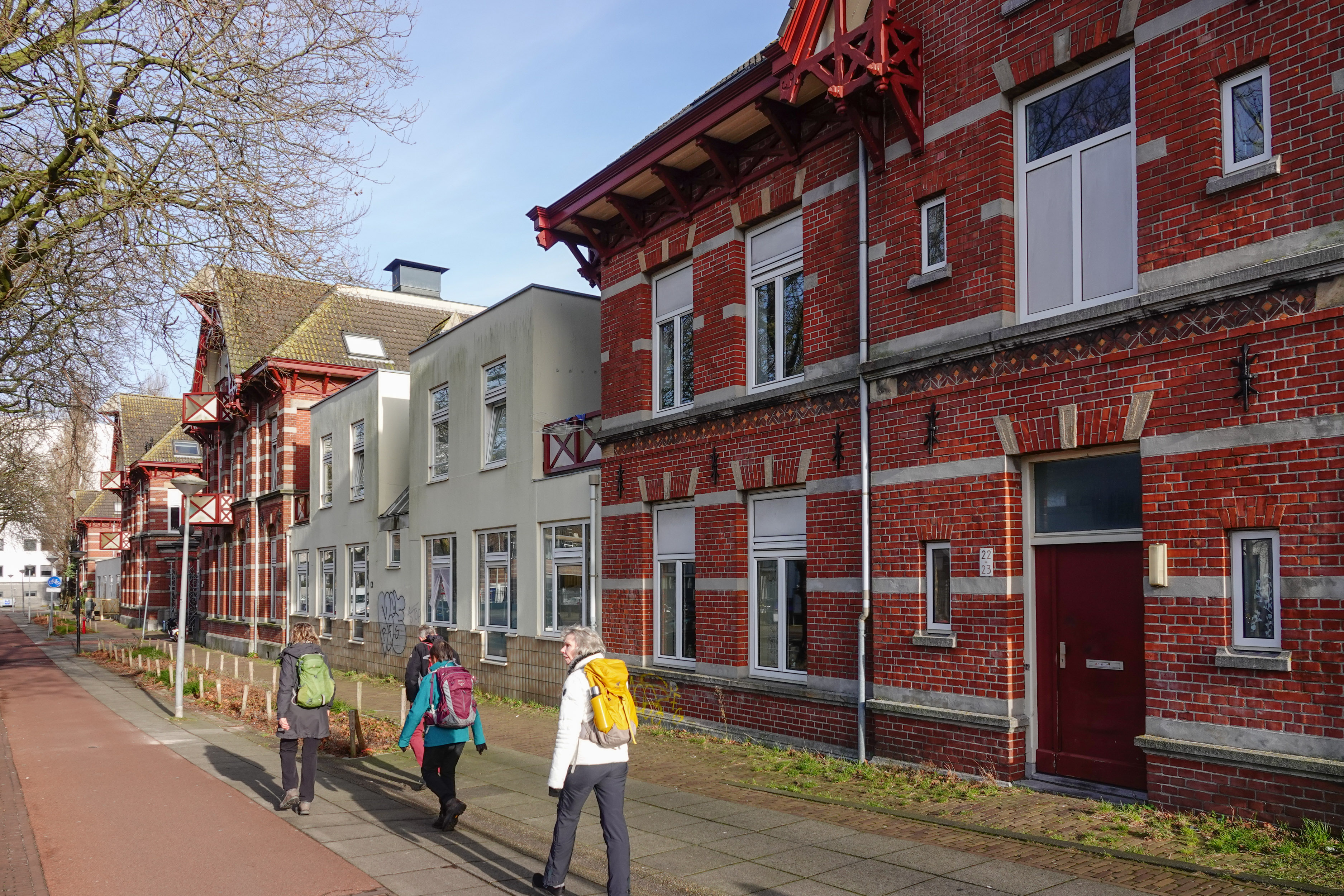 Via de Vogelbuurt met aan de rand het statige gebouw, dat vroeger de LTS was,