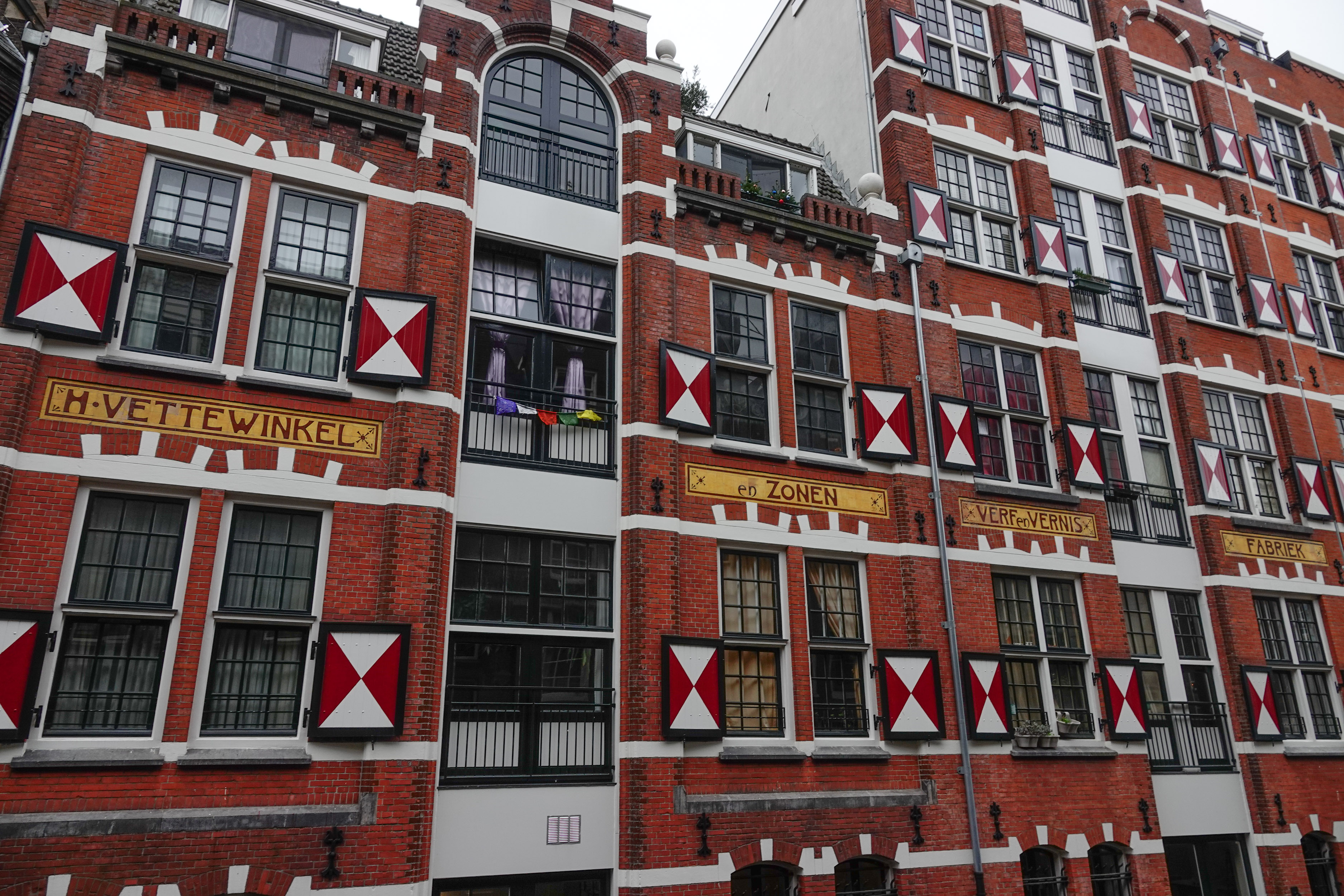 Via het terrein van de Oranje Nassaukazerne komen we achter langs Artis te lopen, langs een enorm pakhuizencomplex.