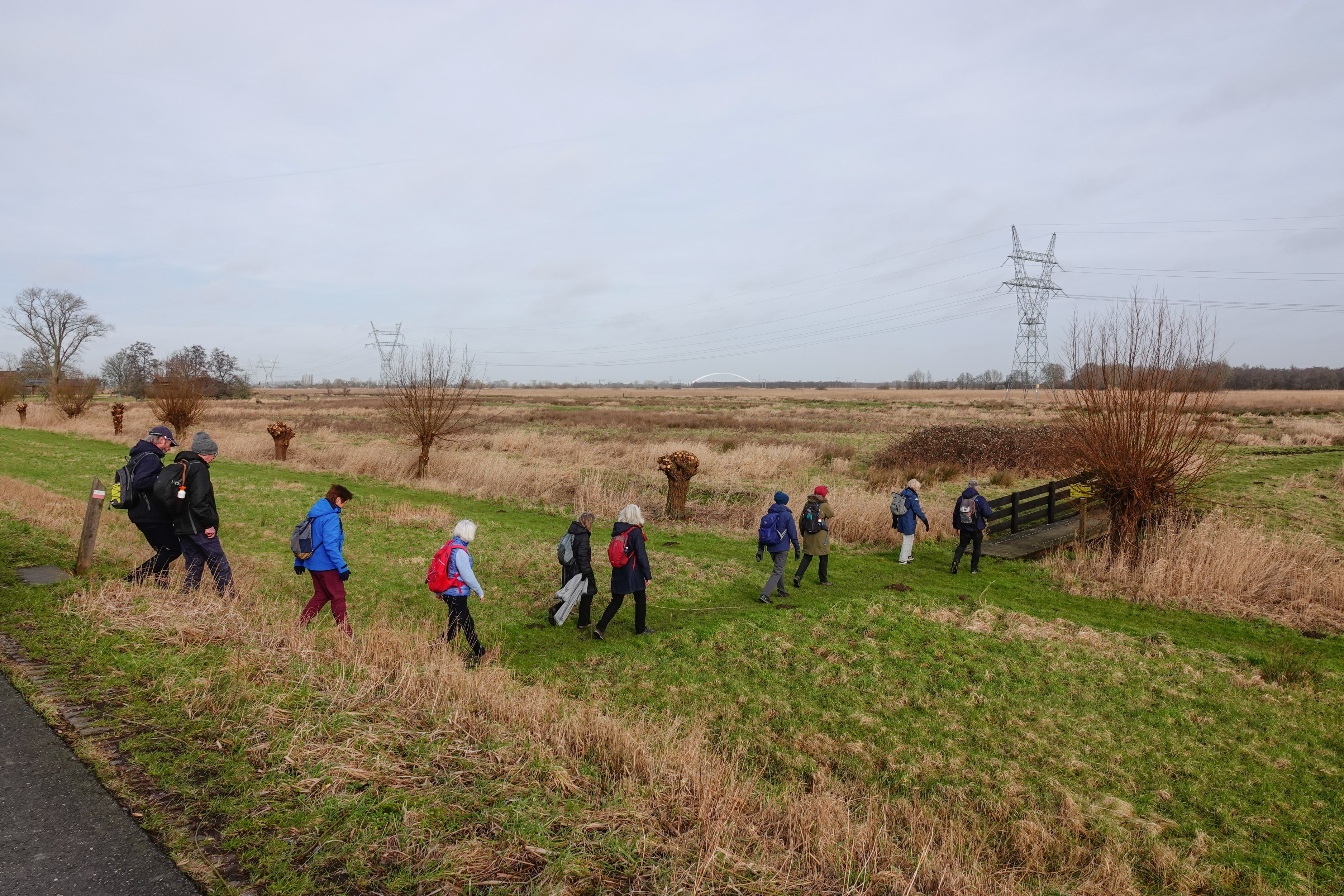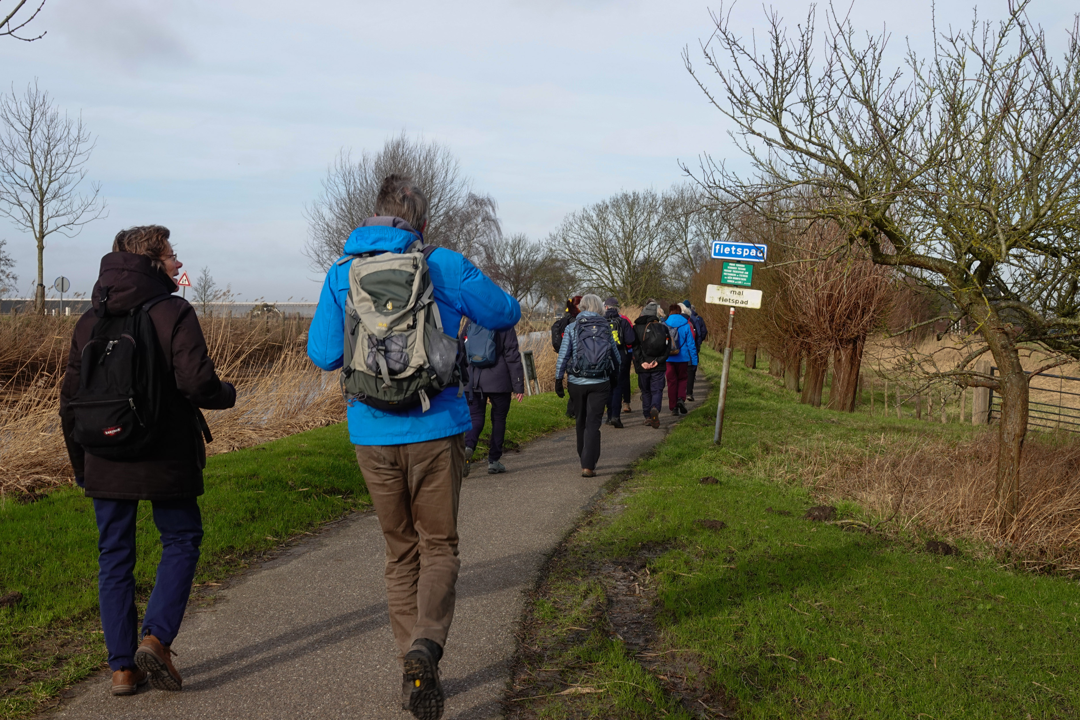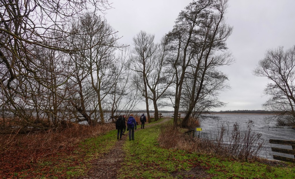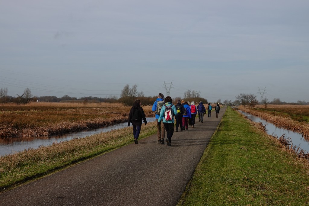 In de ochtend hadden we lekker weer. Weliswaar stond er een stevige koude wind, maar de zon probeerde door het wolkendek heen te komen. Heerlijk wandelweer, dus.