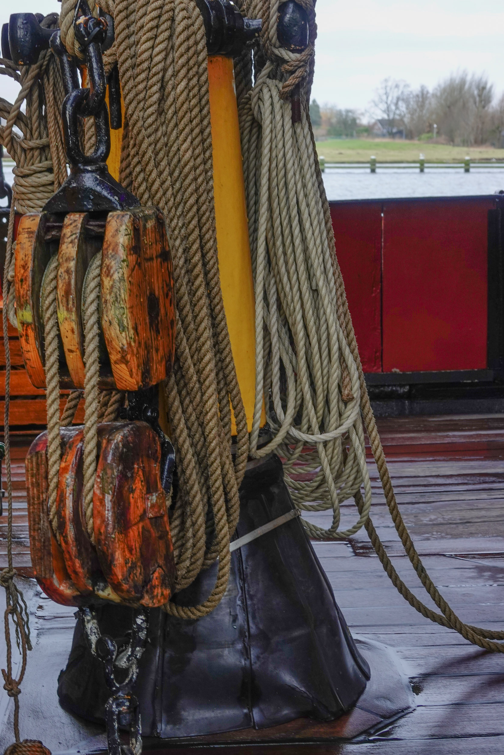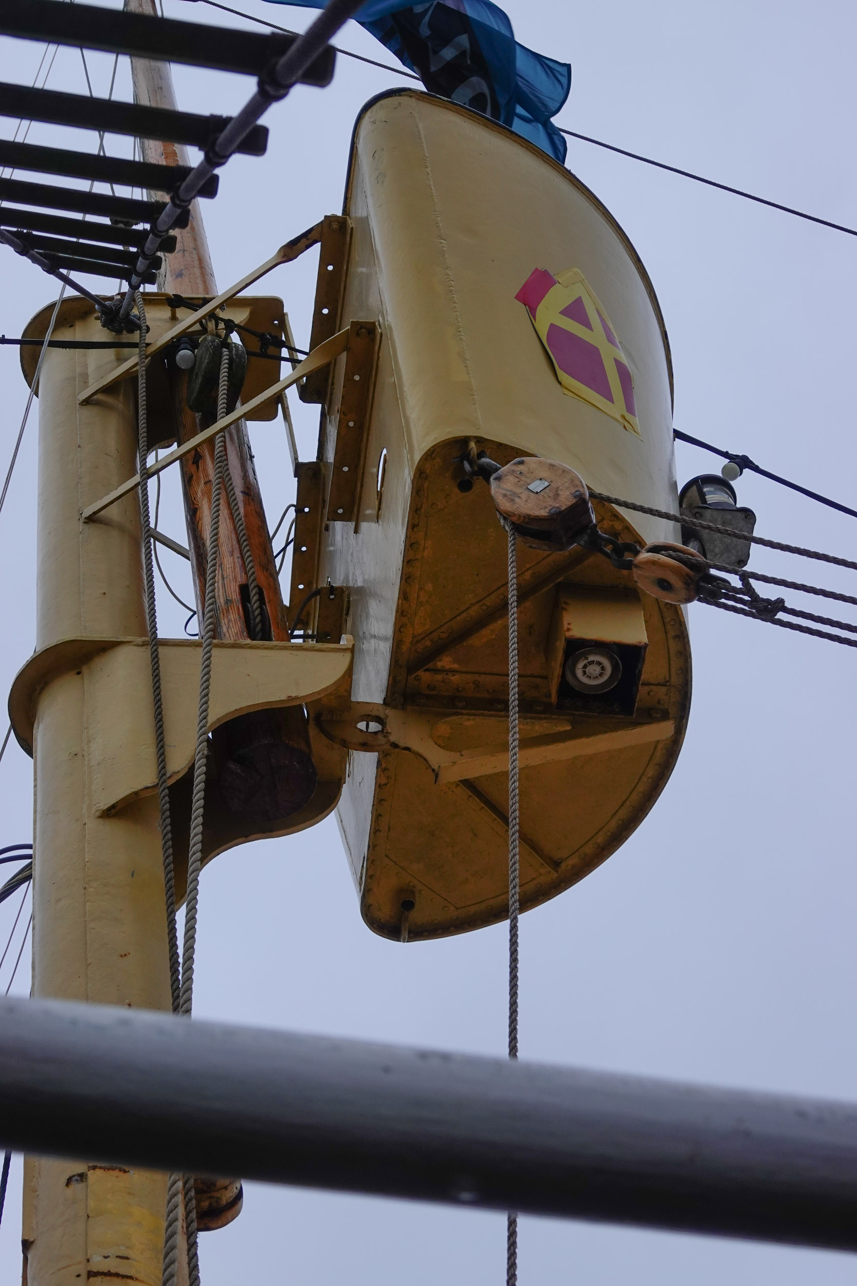 In de buurt van het torenfort lag een boot, die wij hadden herkent, als de officiële (TV) boot van Sinterklaas. Ze waren namelijk nog een mijter vergeten te verwijderen van het kraaiennest .