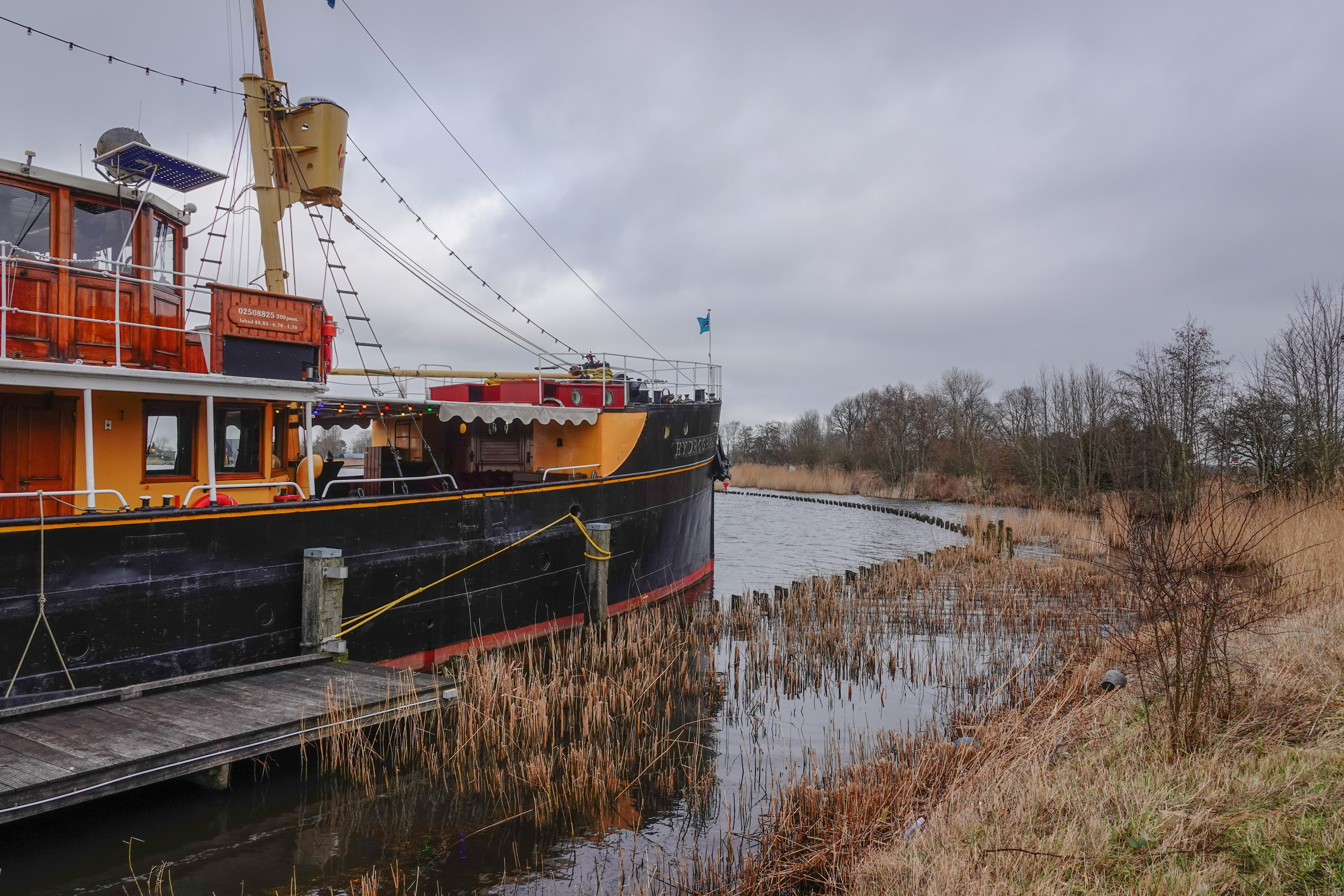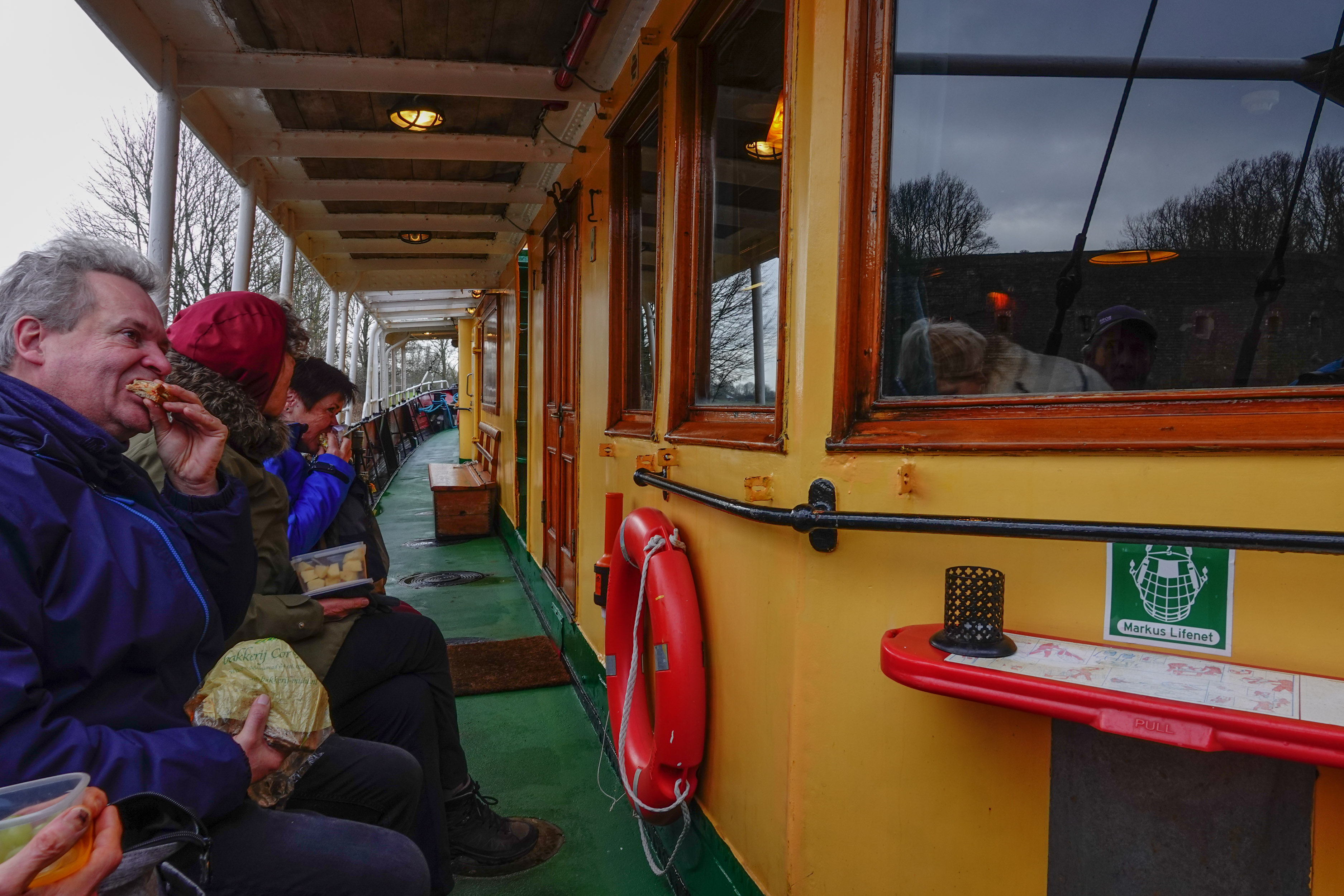 Het bleek, dat hij had geregeld, dat wij ons lunchpakket op de boot konden opeten, heel leuk! Het schip heet ‘De Hydrogaaf’. Hier lees je meer informatie over de boot.