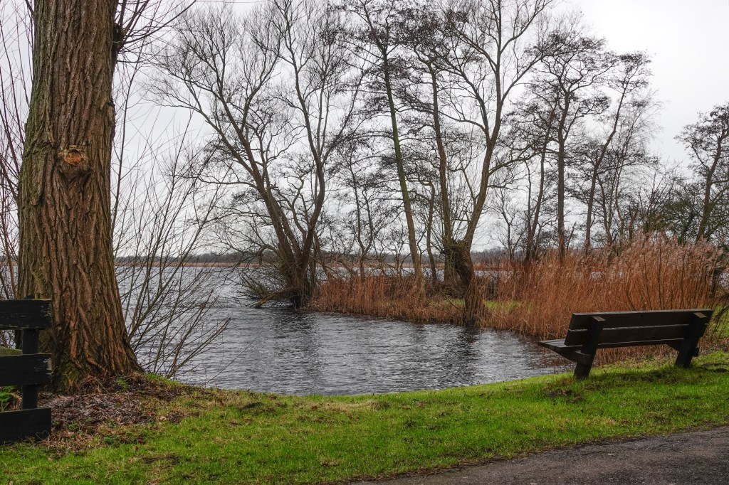 en uiteindelijk kwamen we dan toch even langs het water van het Naardermeer te lopen. We hadden tot nu toe weinig van het meer gezien, maar hier werd het bewijs geleverd, dat we inderdaad rondom het Naardermeer aan het lopen waren.