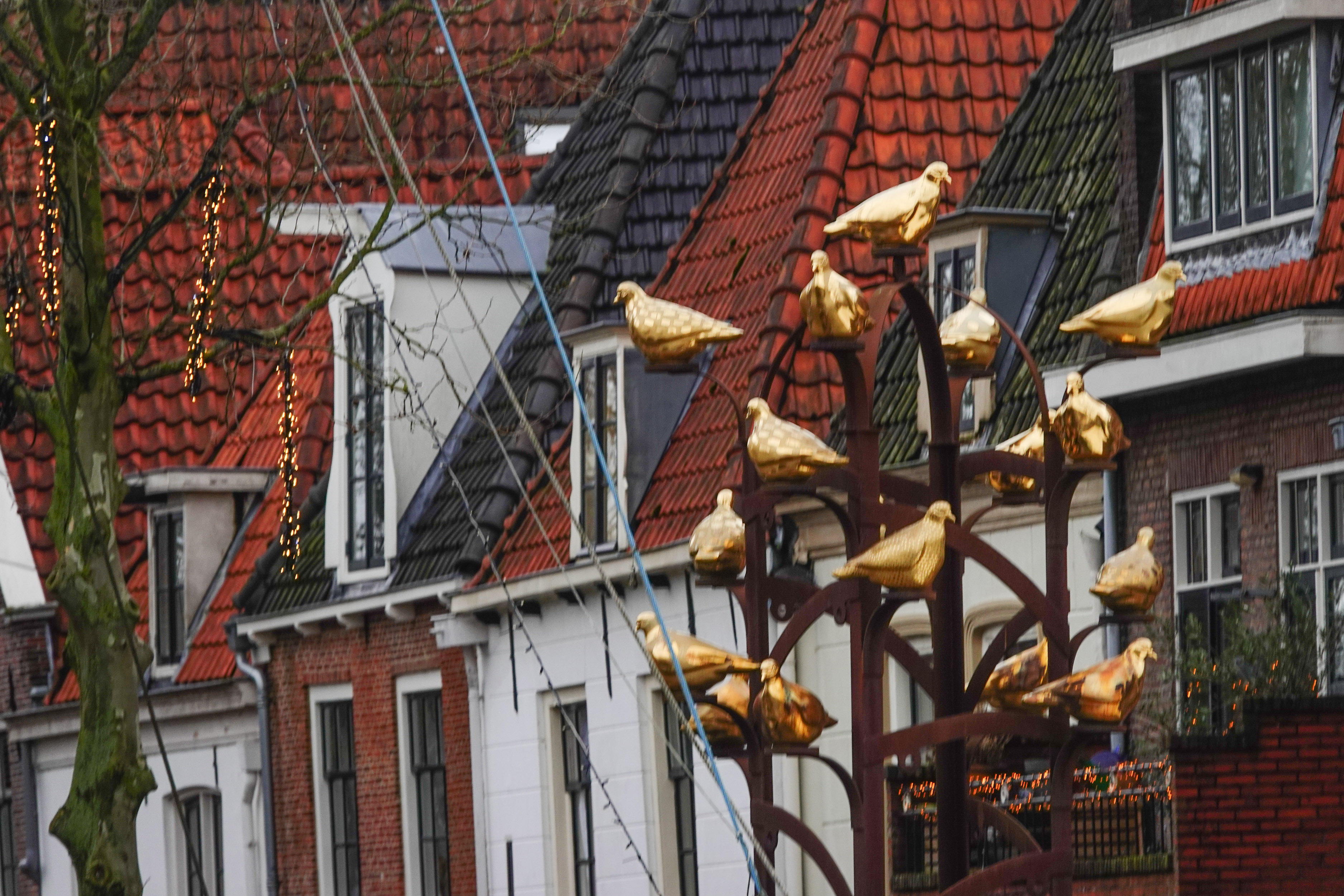 In Alkmaar zitten ze heel hoog verspreid over de stad omdat ze van de oorspronkelijke uitvoering werden gejat.