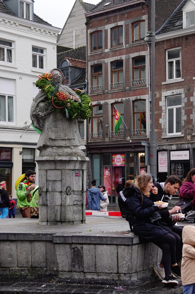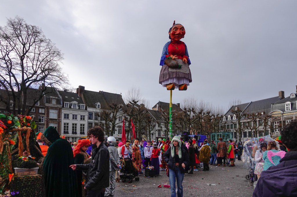 Elk jaar staat dus hetzelfde op het programma. Typisch voor Maastricht is dus dat op zondag ’t Mooswief na de elf kanonschoten, wordt opgehangen op het Vrijthof. In de loop van de jaren heeft men van het stenen beeld op de markt een pop gemaakt. Zolang zij daar hangt is het Carnaval. Op zondag volgt de optocht, de Bonte Sturm’ , op dinsdag trekken de zogenaamde zaate Hermeniekes door de stad. ’s Avonds wordt dan ’t Mooswief weer naar beneden gehaald onder treurgezang. Daar wordt menig traantje geplenkt want een jaar wachten op de volgende Carnaval is o zo lang.