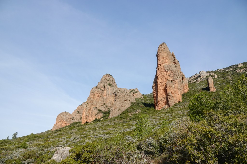 De zon had vandaag een sluier en dat maakte de wandelomstandigheden ideaal. We liepen tussen de steenkolossen van de Mallas door en klommen gestaag naar boven.