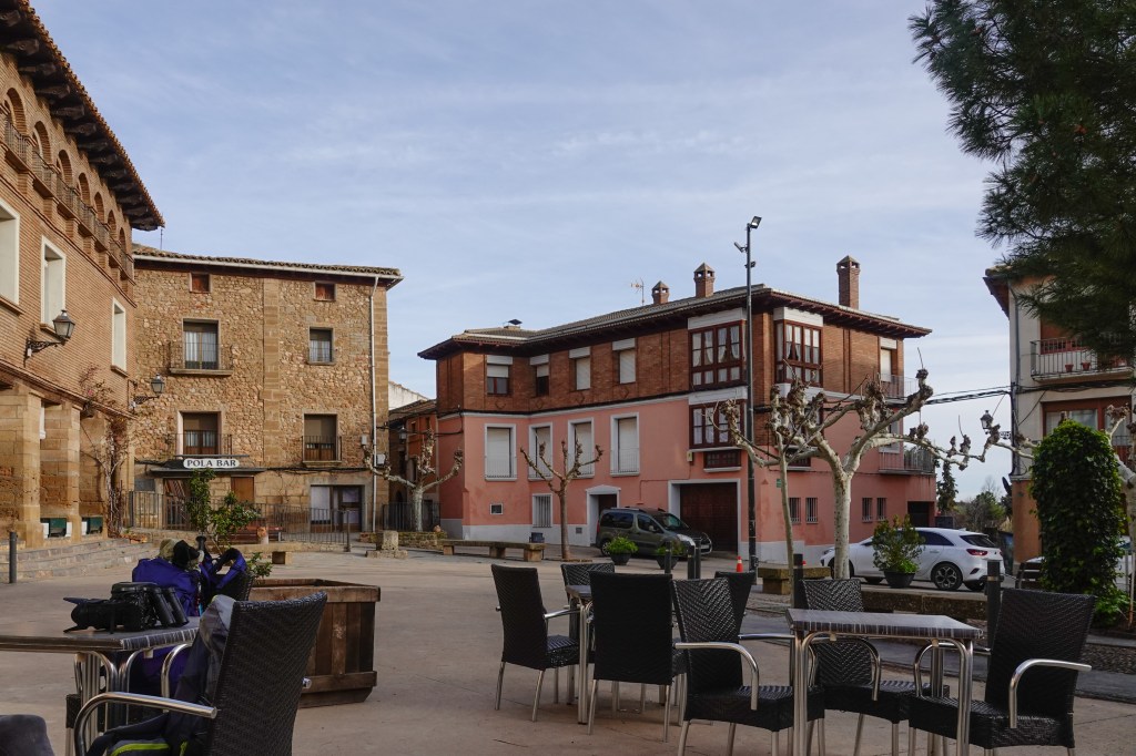 Op het dorpsplein rustten we uit. Op het terras was helaas geen consumptie te verkrijgen, maar wel in een barretje in één van de kleine straatjes.