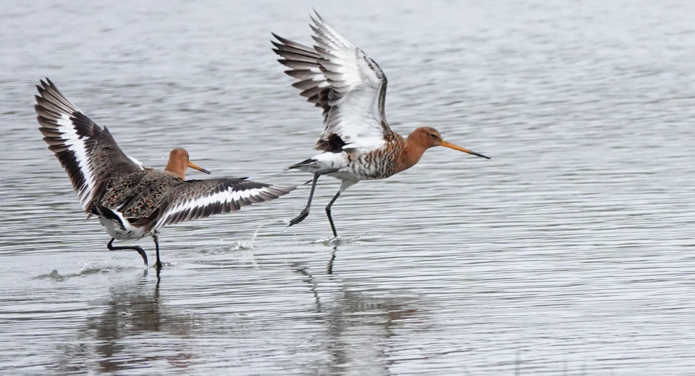 Maar dan, aangesterkt en wel, gaan ze zorgen voor het nageslacht. Onder de grutto’s hing een broeierige sfeer van aantrekken en wegjagen.