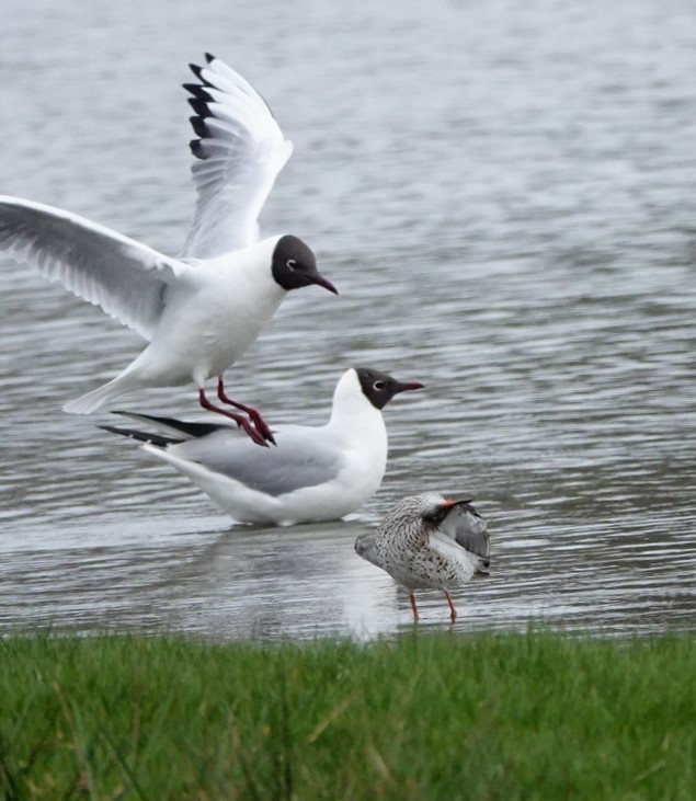 en ook de kokmeeuw, hoewel geen weidevogel, is actief.