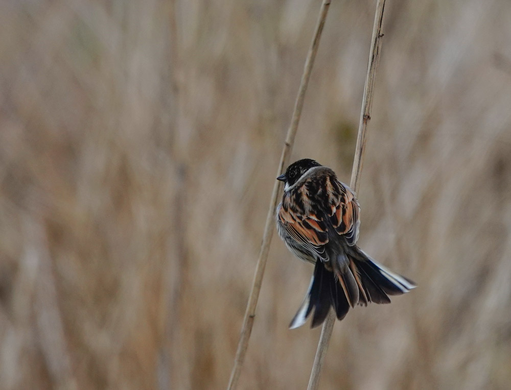 Bij de rietlanden van het Purmerbos was het een gekwinkeleer van jewelste. Dan besef je hoe stil het ’s winters toch is. Ik zag vooral rietgorzen.