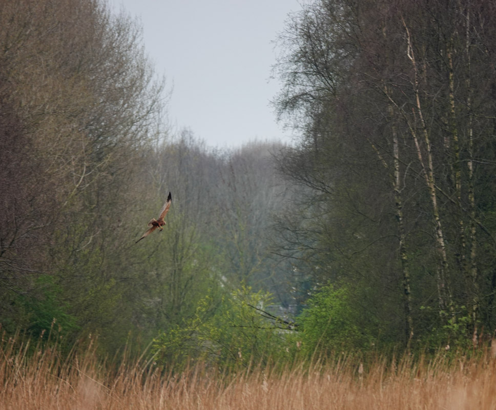 Heel in de verte was de buizerd op jacht en ja hij had zijn prooi te pakken! Het schouwspel was mooi, voor de foto was het helaas te ver weg.