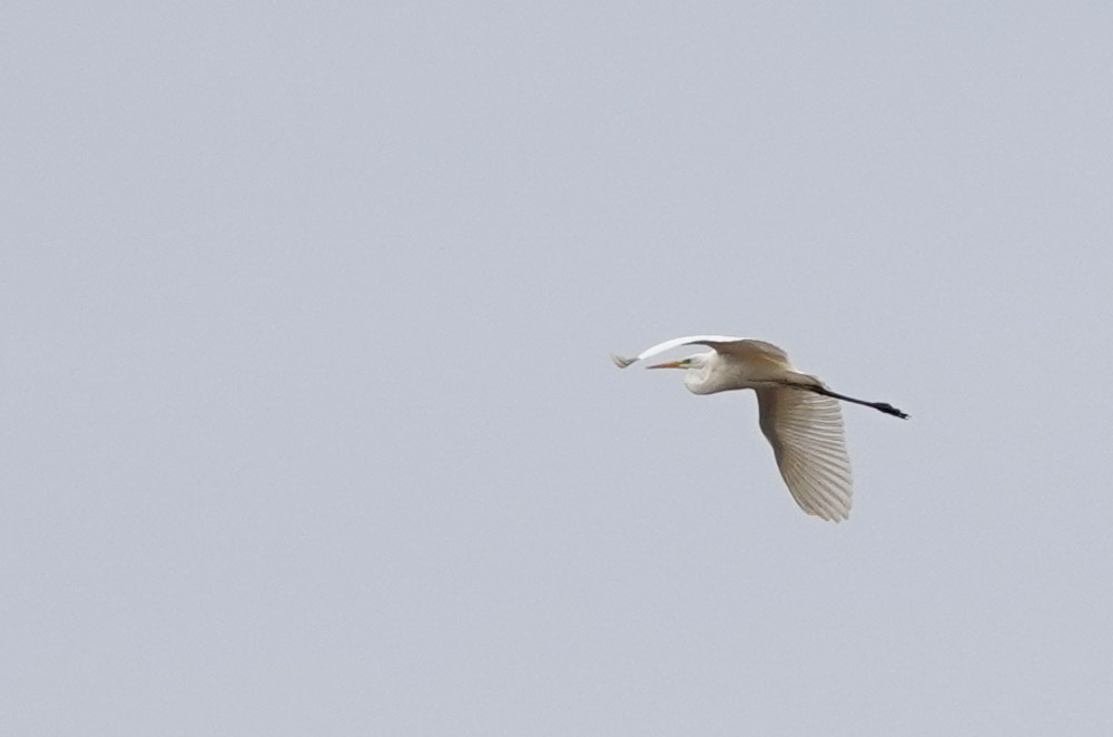 en een zilverreiger vloog over.