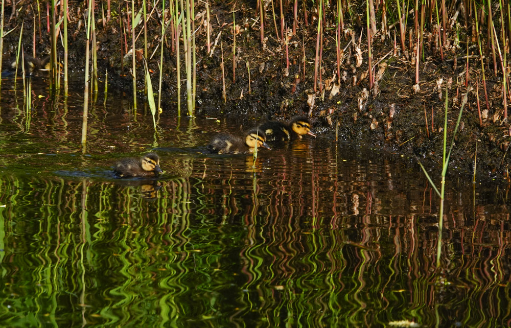 Het Purmerbos werd ons doel. Het is een aangelegd bos in de polder. Er lopen veel slootjes door. Dat verklaart de aanwezigheid van eenden, druk in de weer met pulletjes,