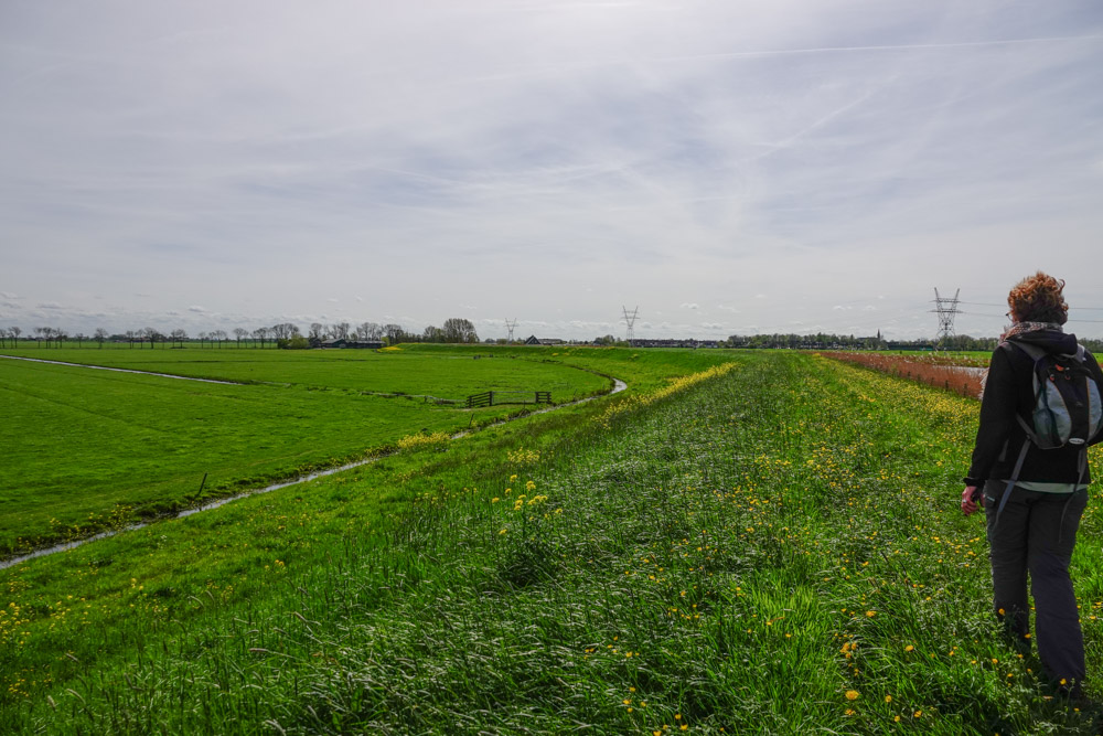 Buiten het bos loop je verder door de uitgestrektheid van de polder.