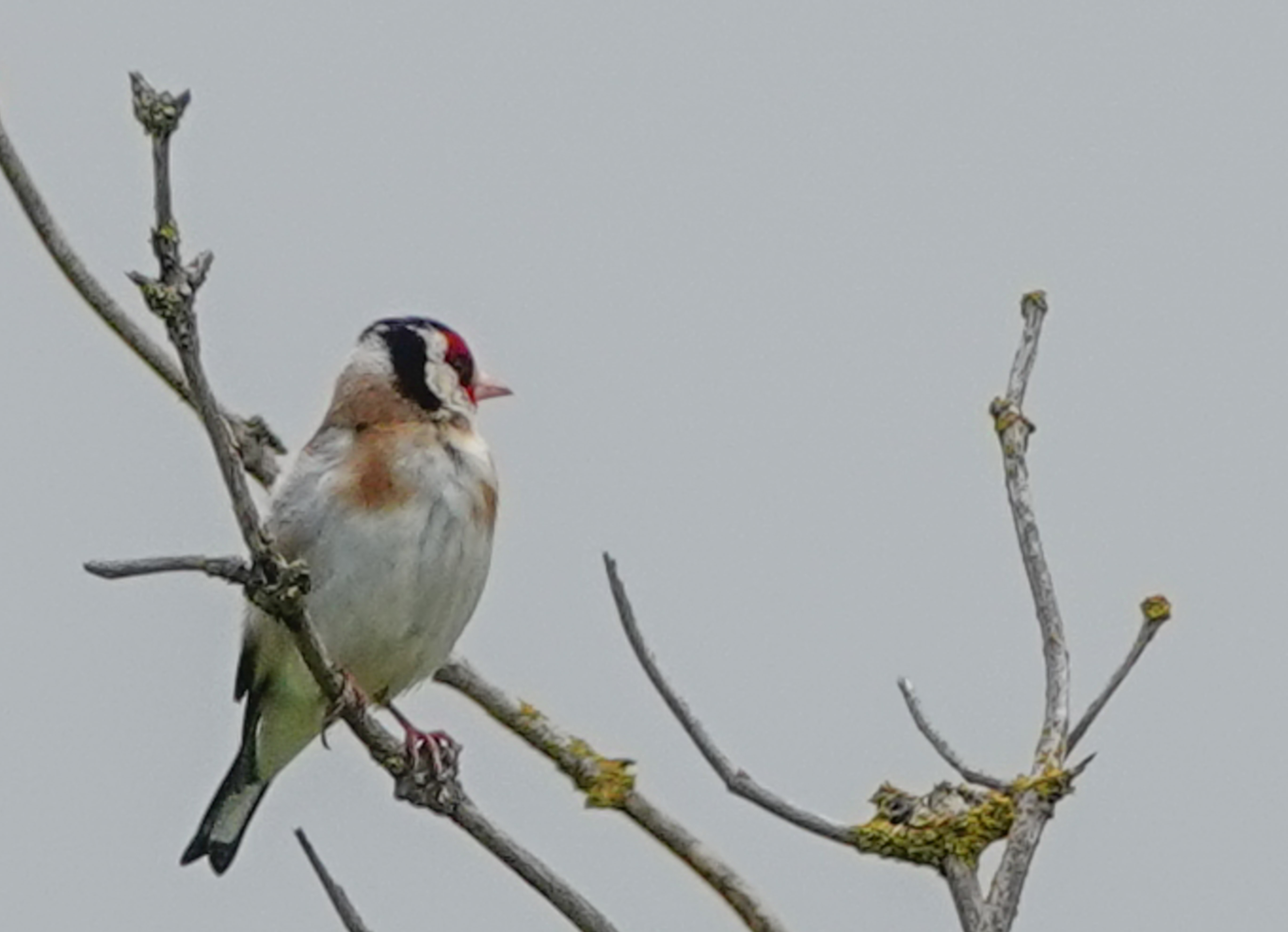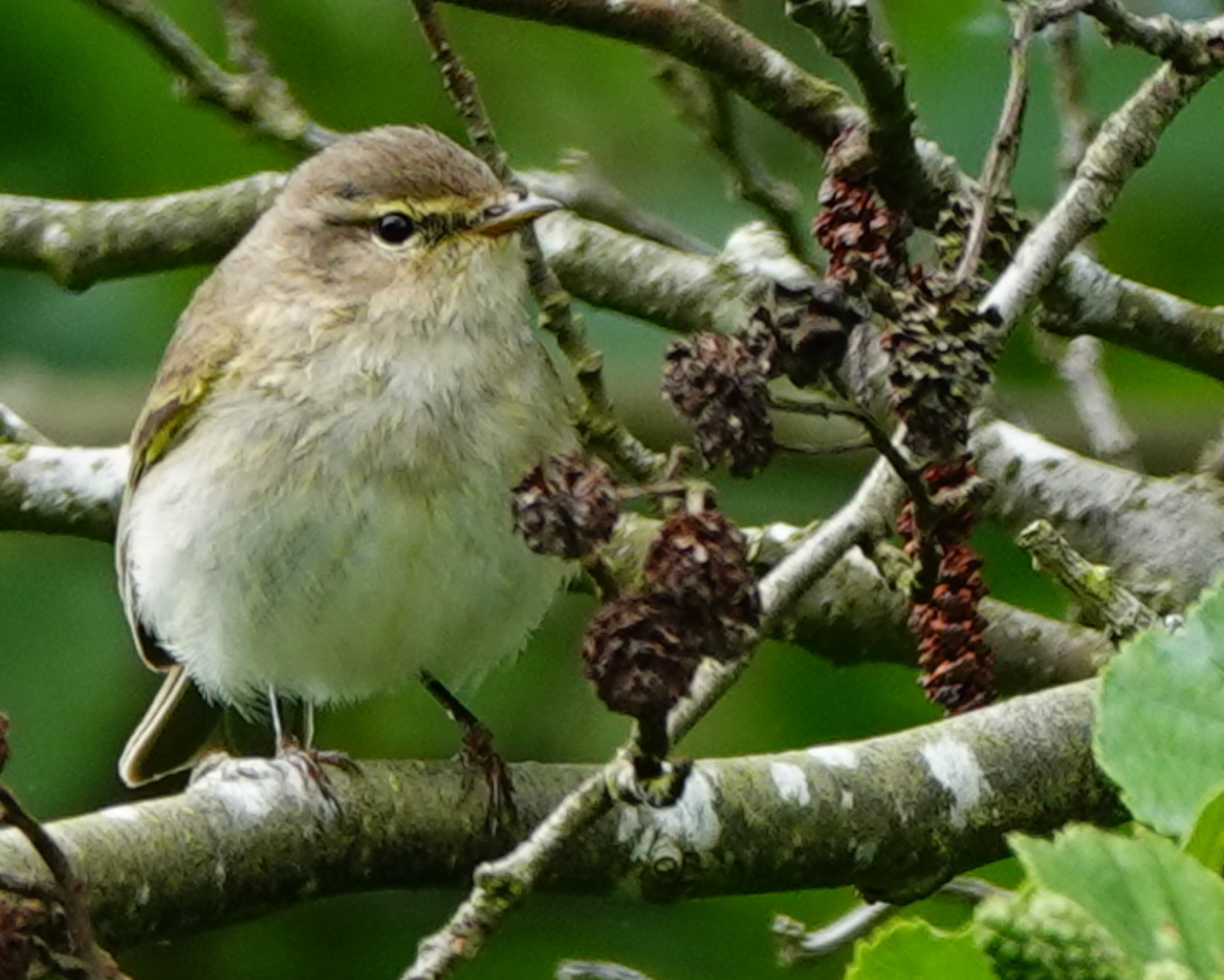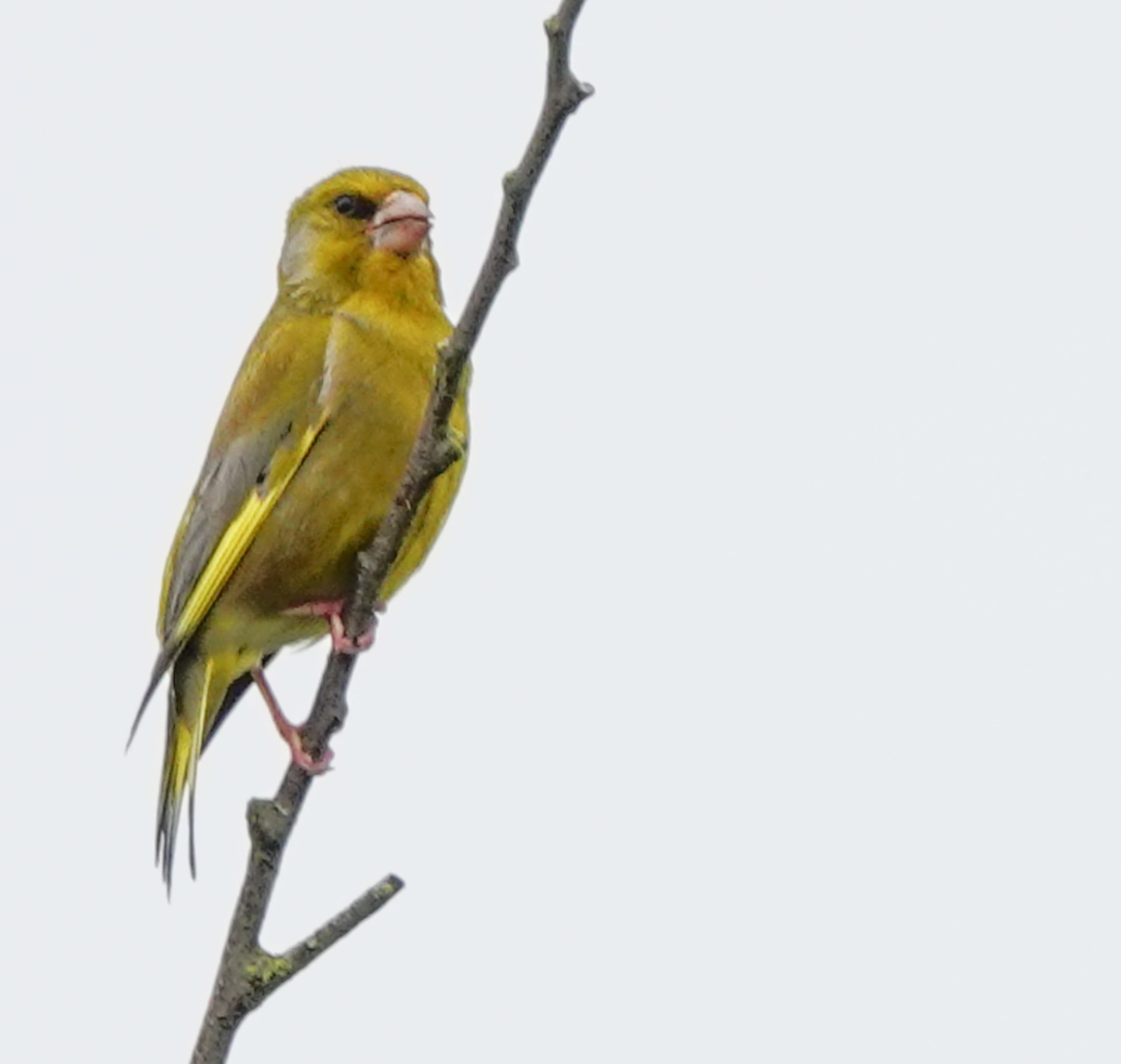 Onze blik werd ook af en toe omhoog getrokken naar het geluid van de vele vogels in het gebied. Vink, heggenmus, puttertje, kneu, groenling en de tjiftjaf kreeg ik voor de lens.