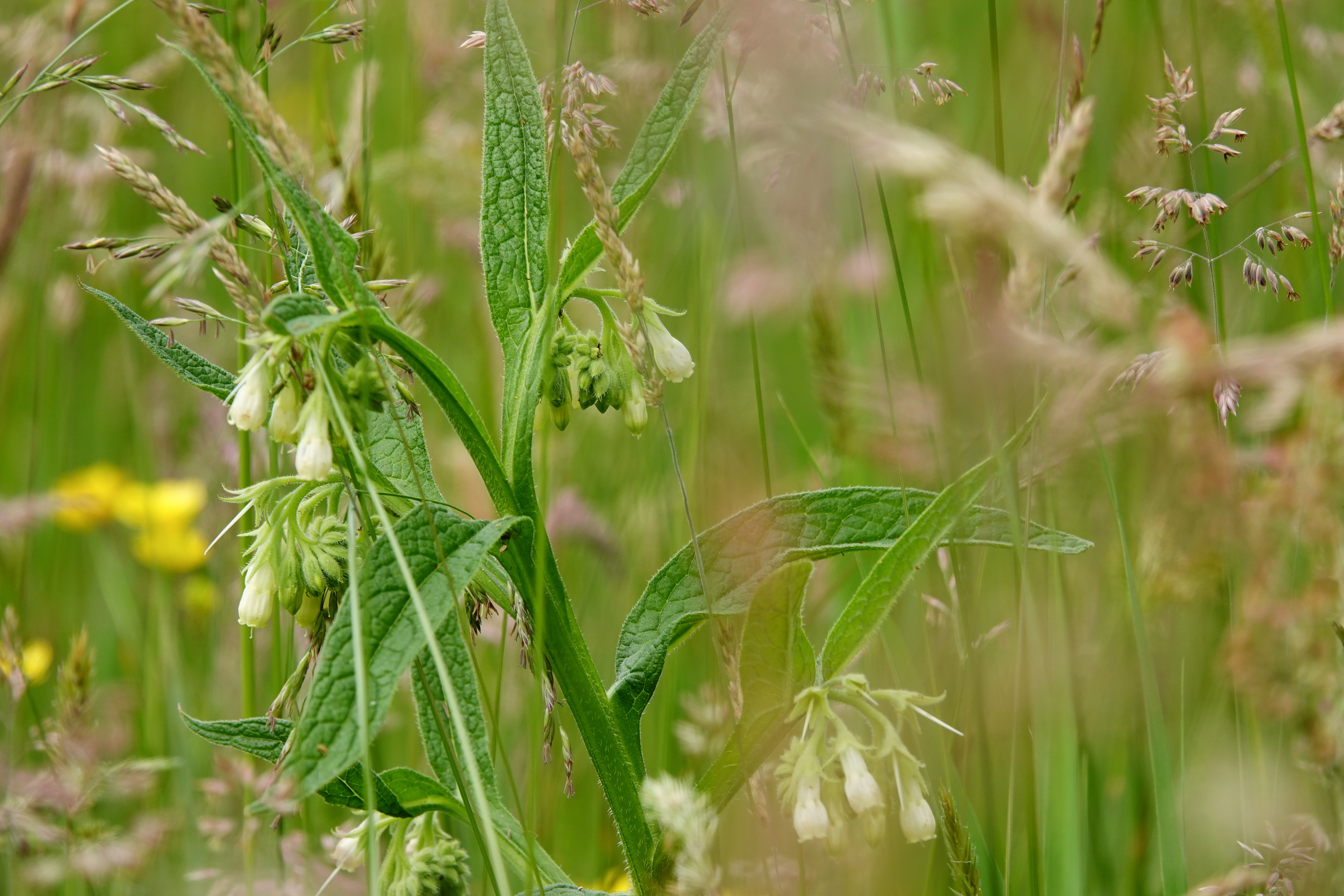 Andere plantjes die opvielen: smeerwortel, zuring, boterbloemen, weegbree, knikkende distel, vlier en meidoorn.