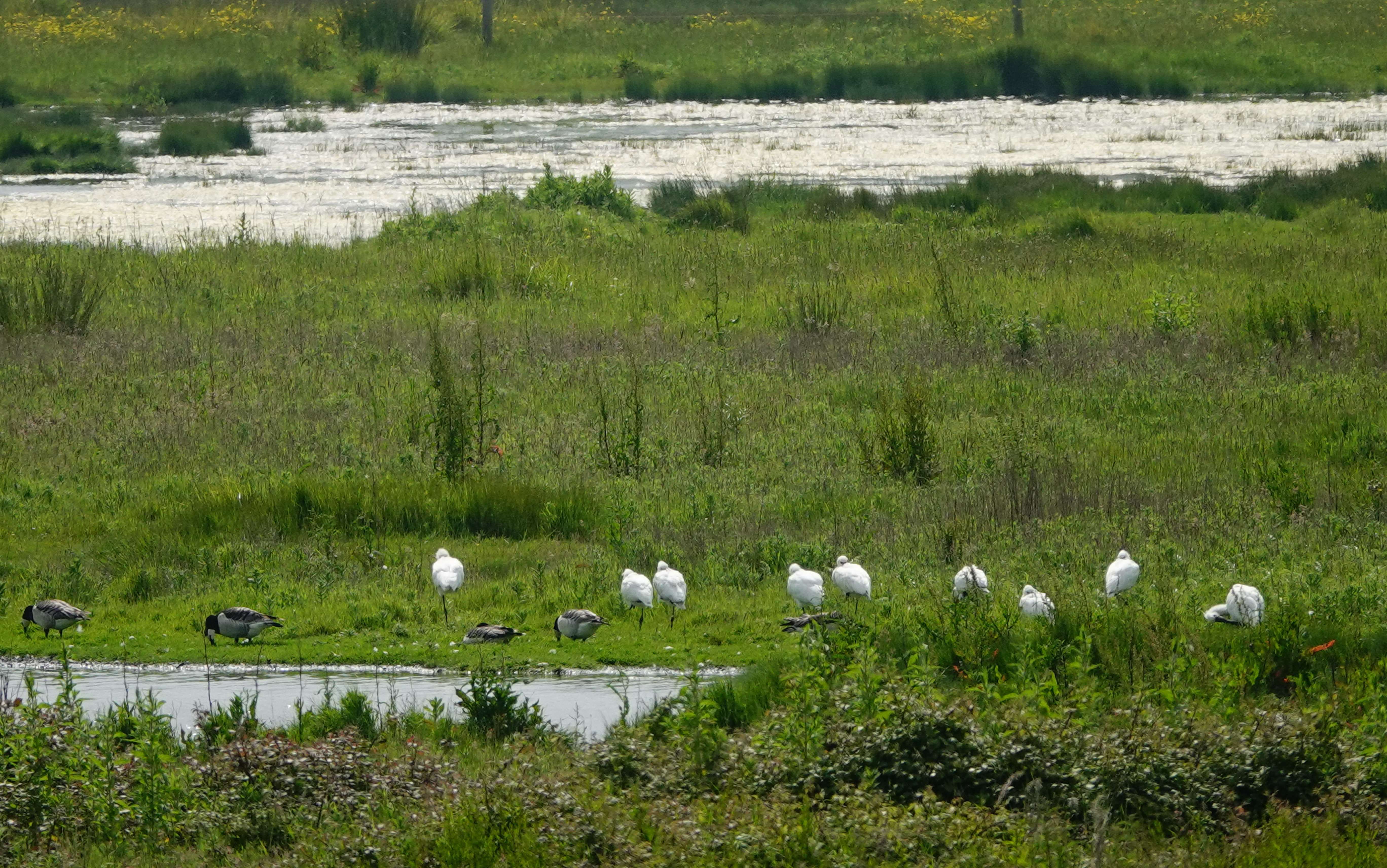 Het werd toch een diverse verzameling: bergeend , kokmeeuwen, kluten, kleine plevier, kwikstaart, een haas, strandpleviertjes, waterhoen, een fuut en een groep lepelaars.
