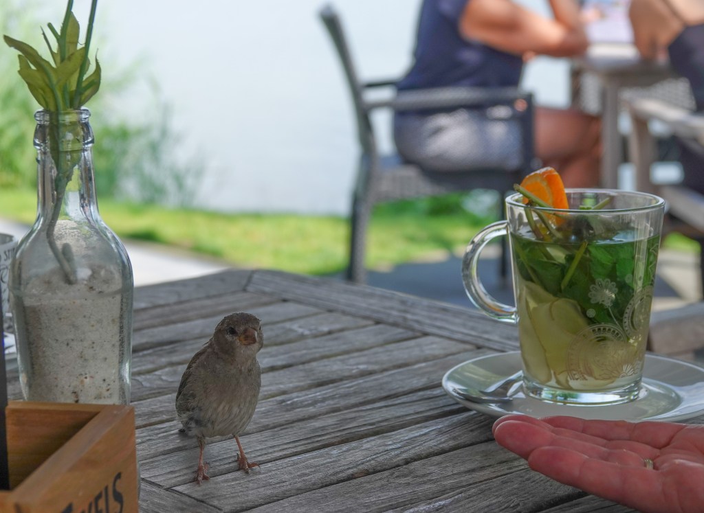 We waren wel toe aan een kopje koffie op deze weldadige plek.