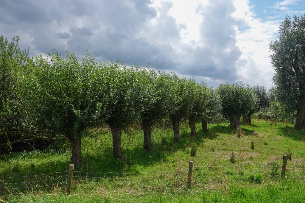Na een wandeling van zo’n 6 km reden we nog naar een lievelings-stukje land van mijn nicht aan het Netelenburchpad. Zij heeft het hier in het verleden al vaak gefotografeerd in alle seizoenen. De rijen wilgenbomen zijn erg fotogeniek, hoewel ze in de zomer het minst sprekend zijn. Ik begreep haar fascinatie voor de bomenrijen.