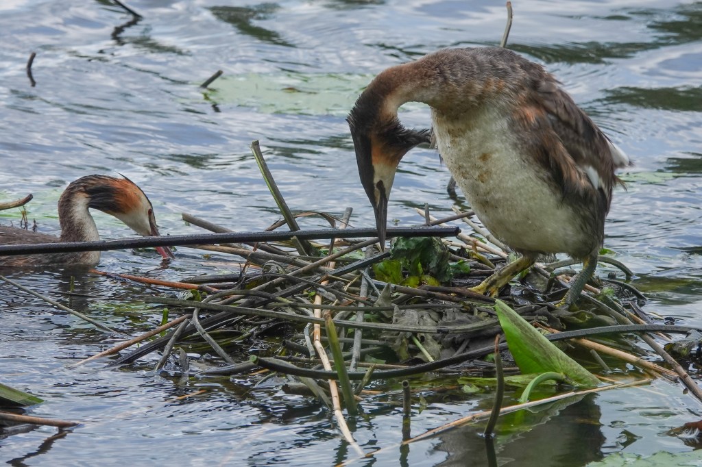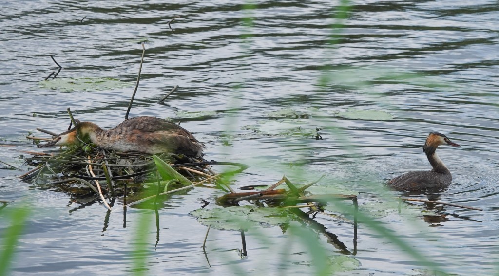 Wij hadden geluk. We troffen een futenpaartje druk bezig met het maken van een nest. Dat zal wel voor de tweede leg zijn. Vanuit een vogelhut konden wij ze ongezien observeren. Prachtig schouwspel.