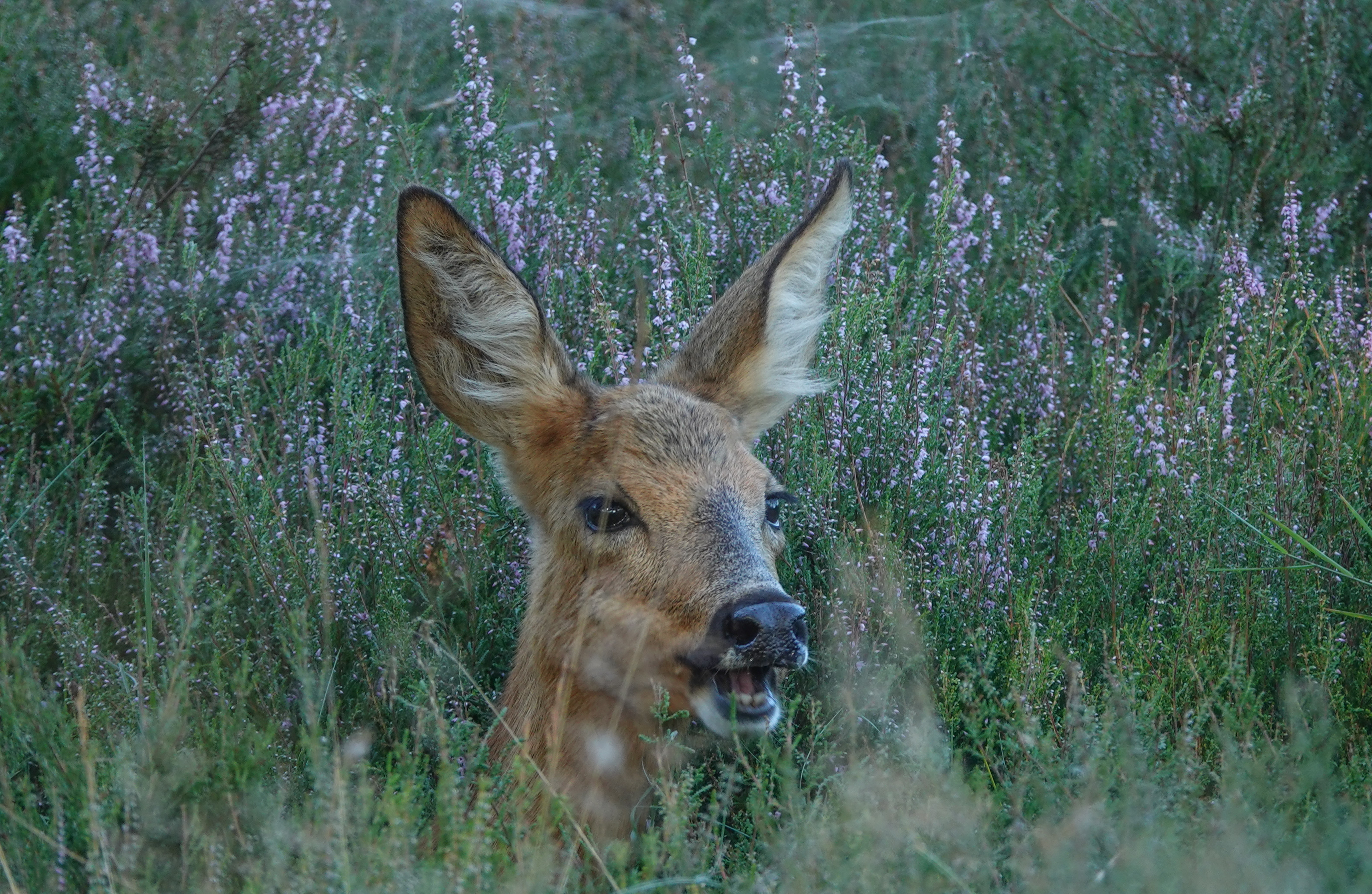 De datum stond al een tijdje gepland. Want dit is de tijd van bloeiend boekweit en met reeën en andere grazers kan dat mooie plaatjes opleveren. Op de warmste dag van het jaar stonden wij dus in de avond op de Westerheide. In de schaduw was het aangenaam. De zon hield nog lang zijn kracht.