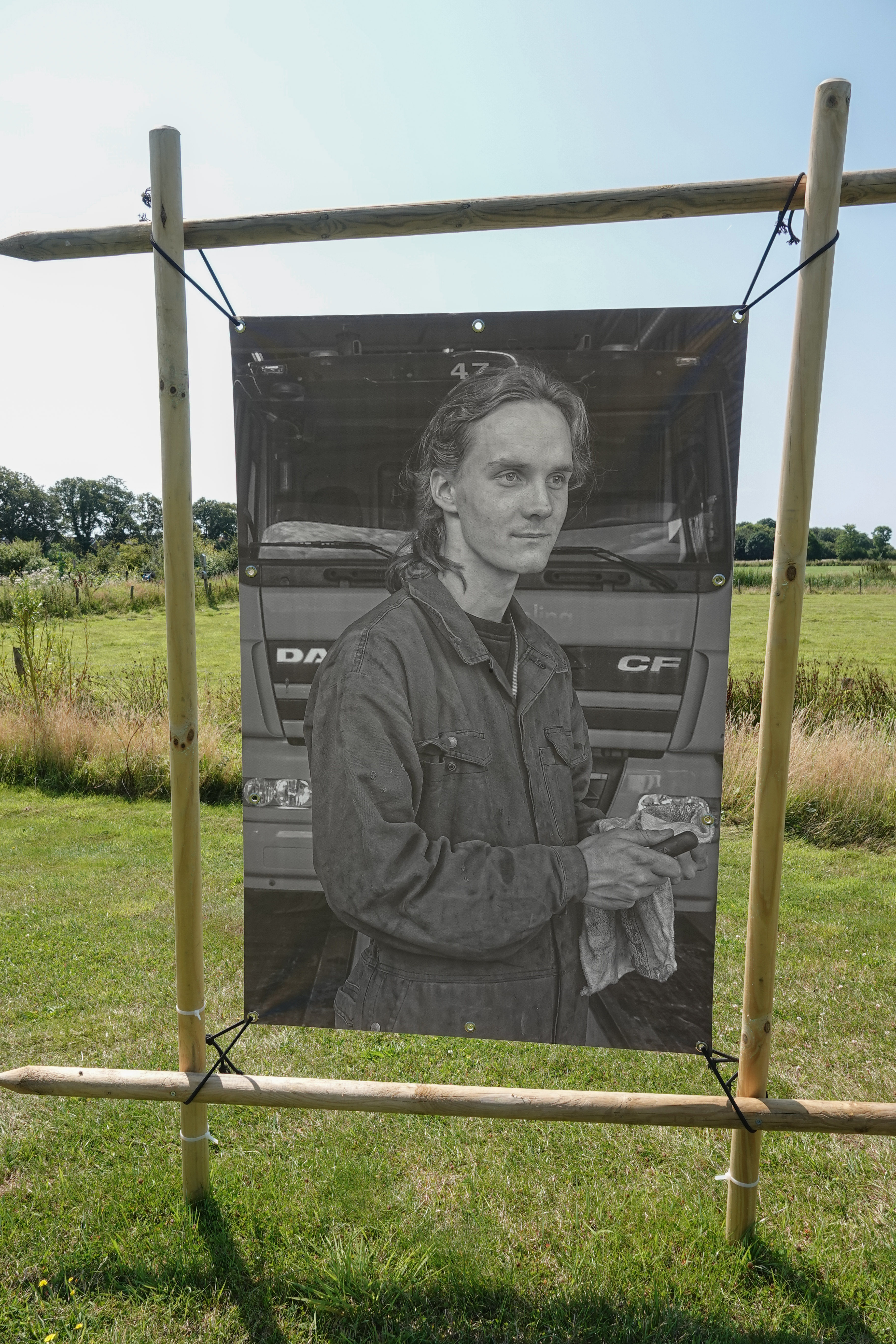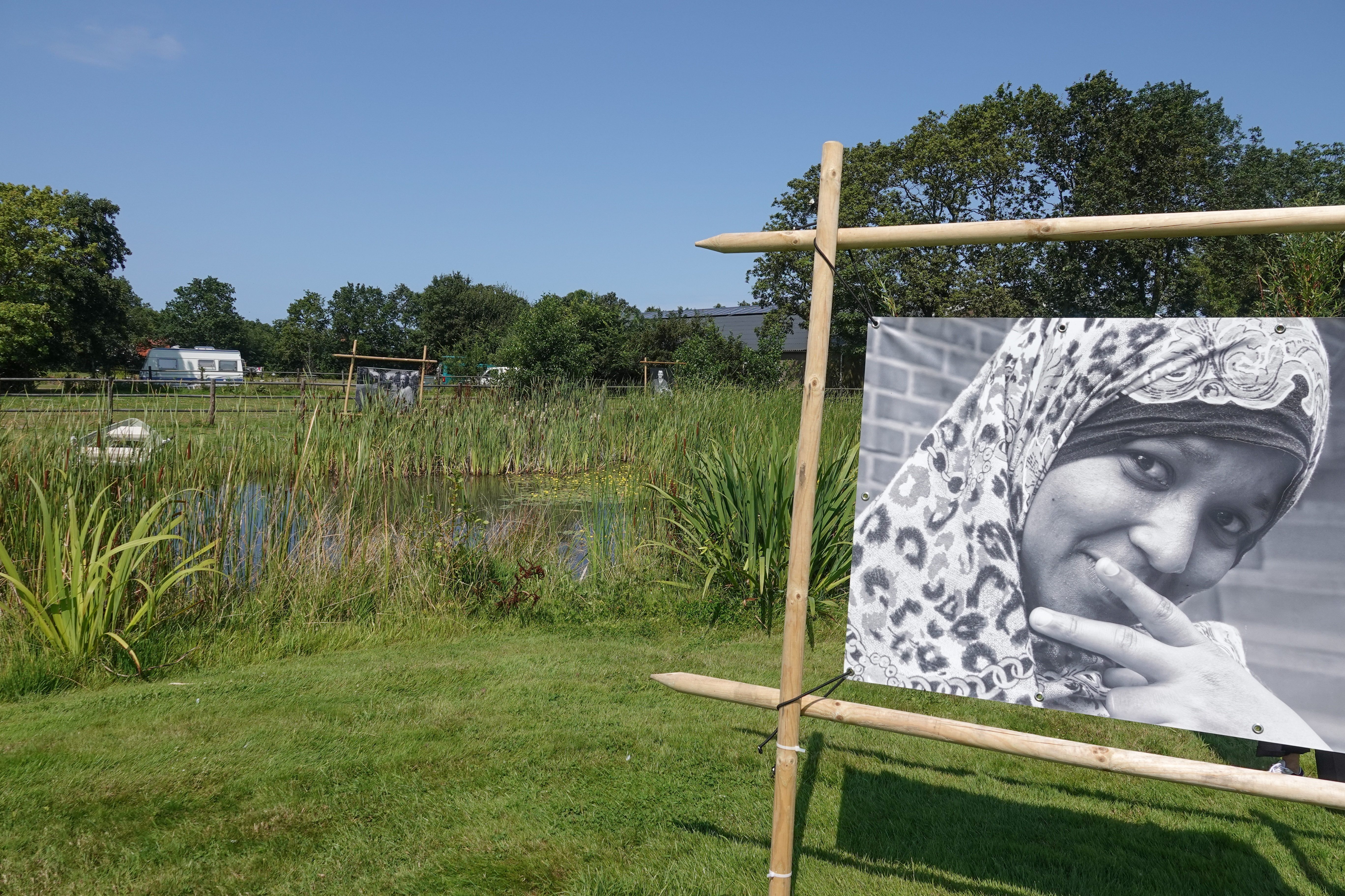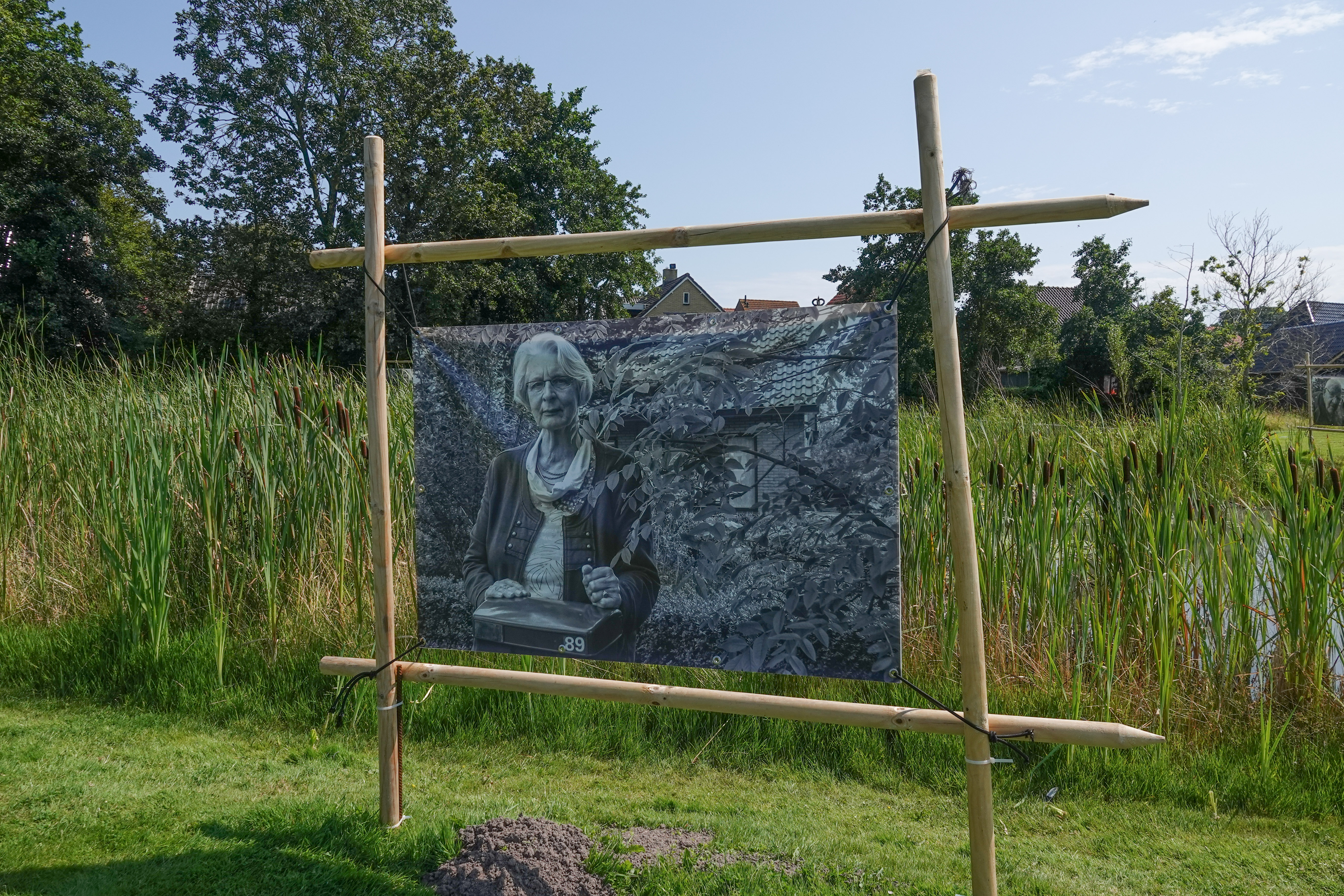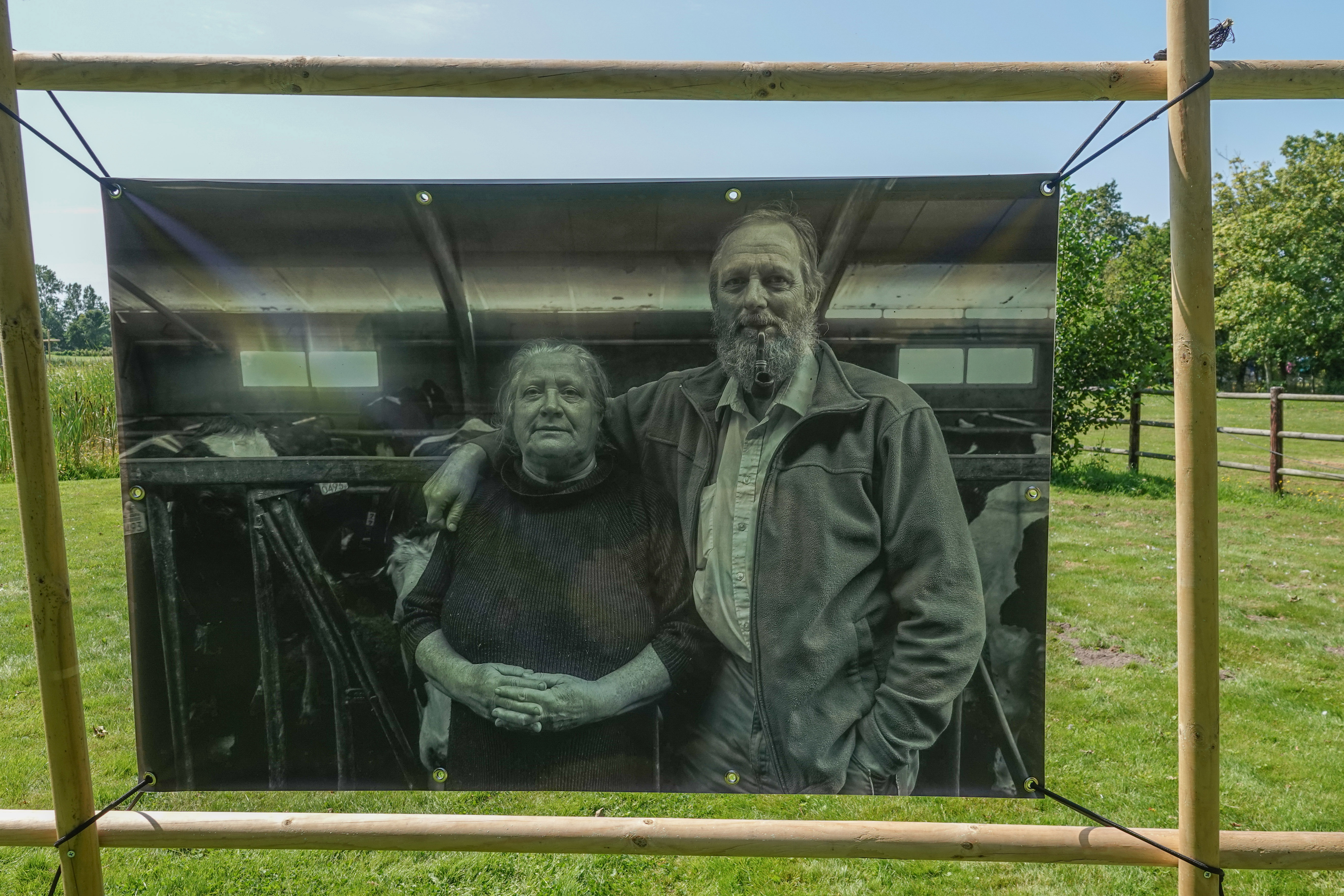 Eerst ging het naar Hippolytushoef. Daar troffen we buitenkunst op een weiland achter B&B Op Zestien. Het waren portretten van Wieringers in zwart wit van Gerrit Ooteman.
