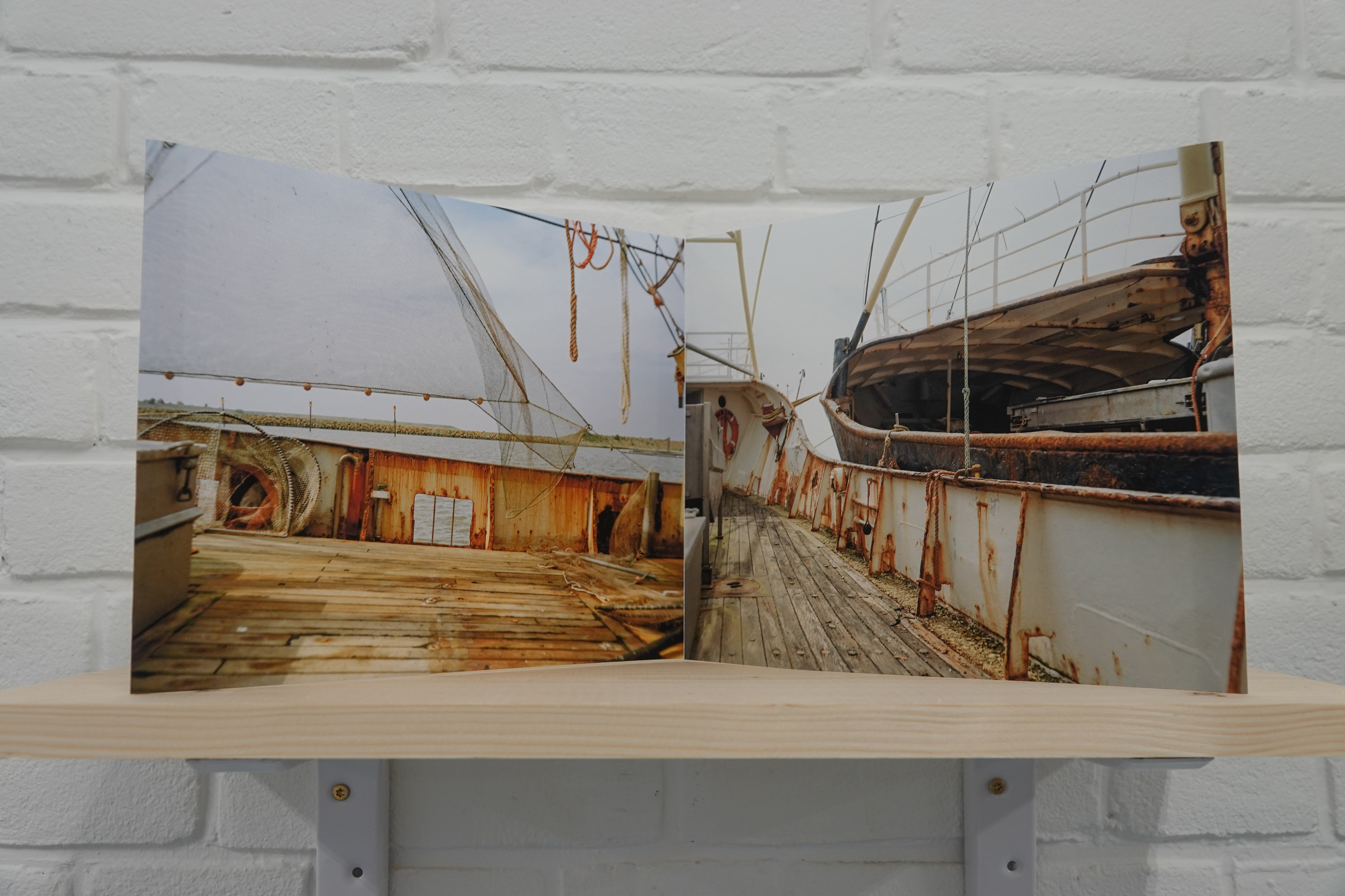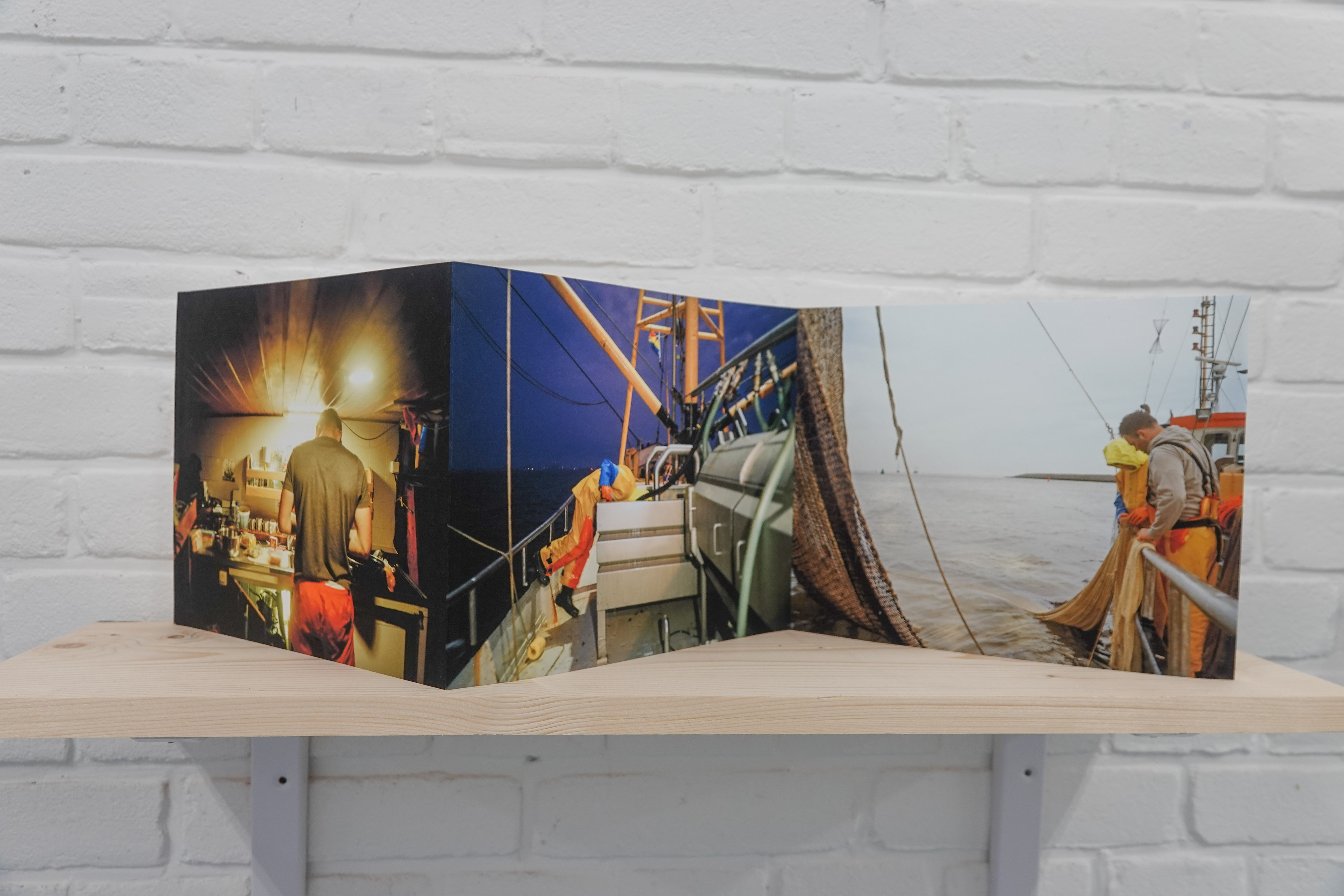 We vervolgden onze route naar den Oever. We zagen leporello’s ( een soort harmonicavorm) van Dirk Kome, samengesteld uit drie of vier foto’s, die een fotoverhaal vertelden over iets van het leven van mensen uit Den Oever. Leuke presentatievorm voor verhalende fotografie. Om te onthouden!
