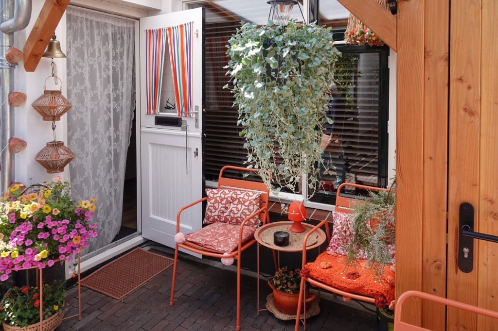 Onze gids, met de bijnaam Jaap Sociaal, bracht ons in heel bijzondere steegjes. In de smalle doorgangen tussen de huizen hadden de mensen knusse hoekjes gemaakt. Daar is het goed toeven uit de wind en in de zon.