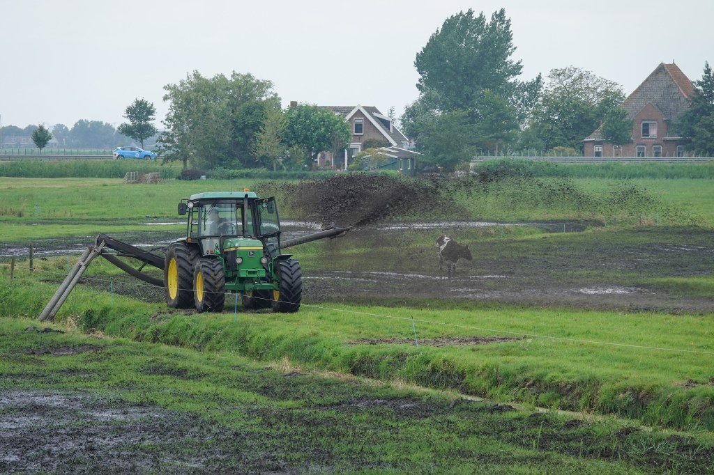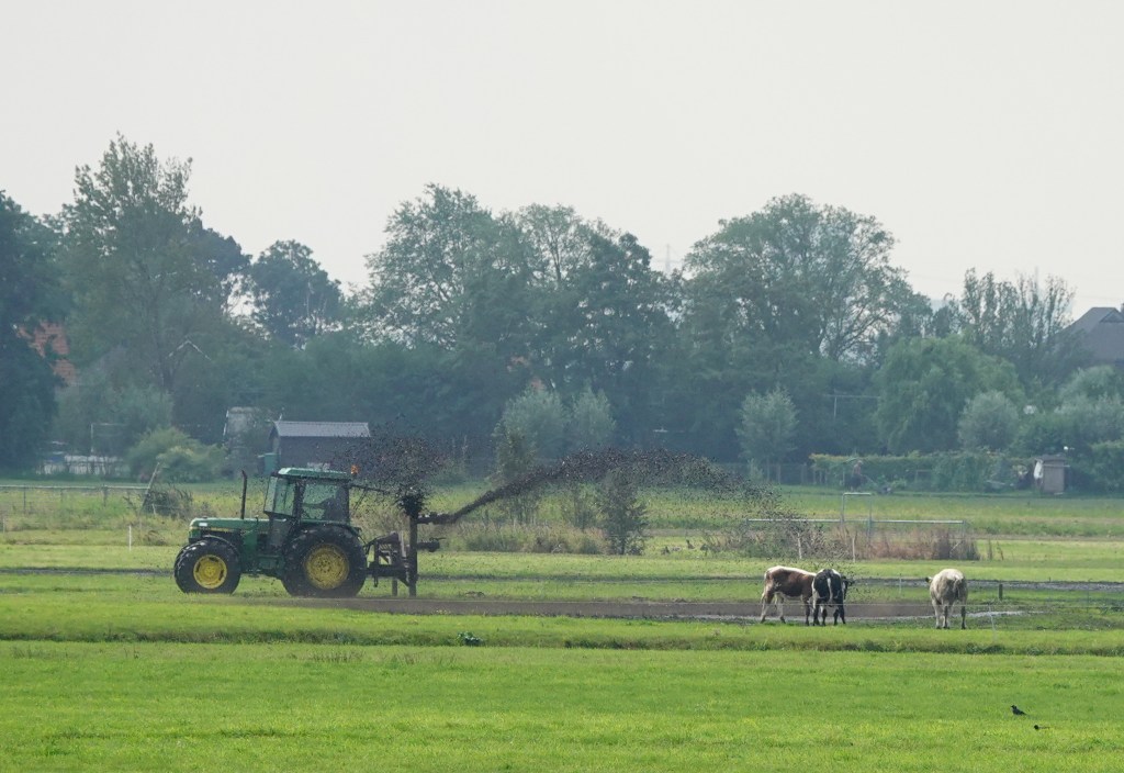Een interessant schouwspel leverde de boer, die zijn mest aan het uitrijden was.