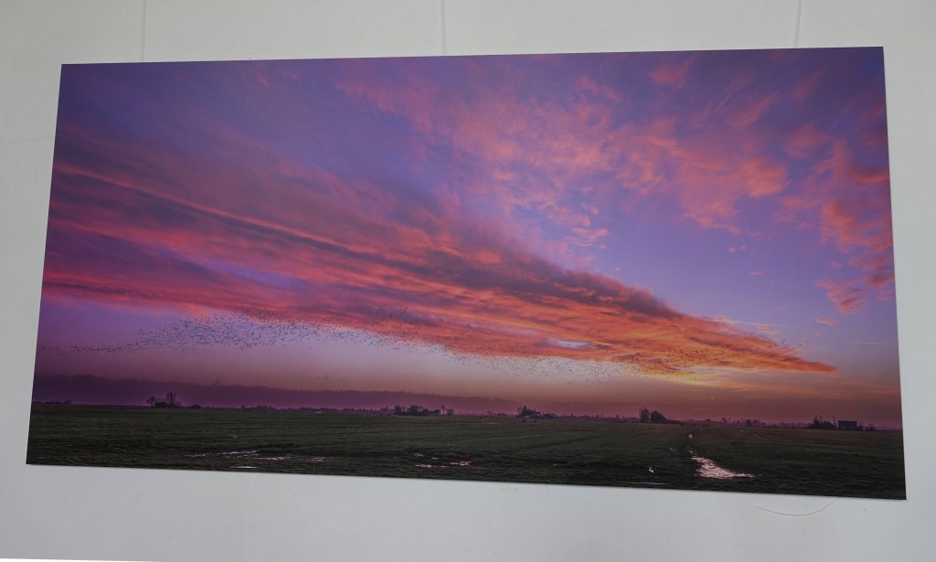 De allerindrukwekkendste foto vond ik die met de rode lucht, waarin een zwerm vogels precies op de grens van de wolken vliegt. Elke vogel en alles is even scherp. Op zo’n groot vlak maakte dat grote indruk. Natuurlijk is mijn foto van die foto maar een slap aftreksel.