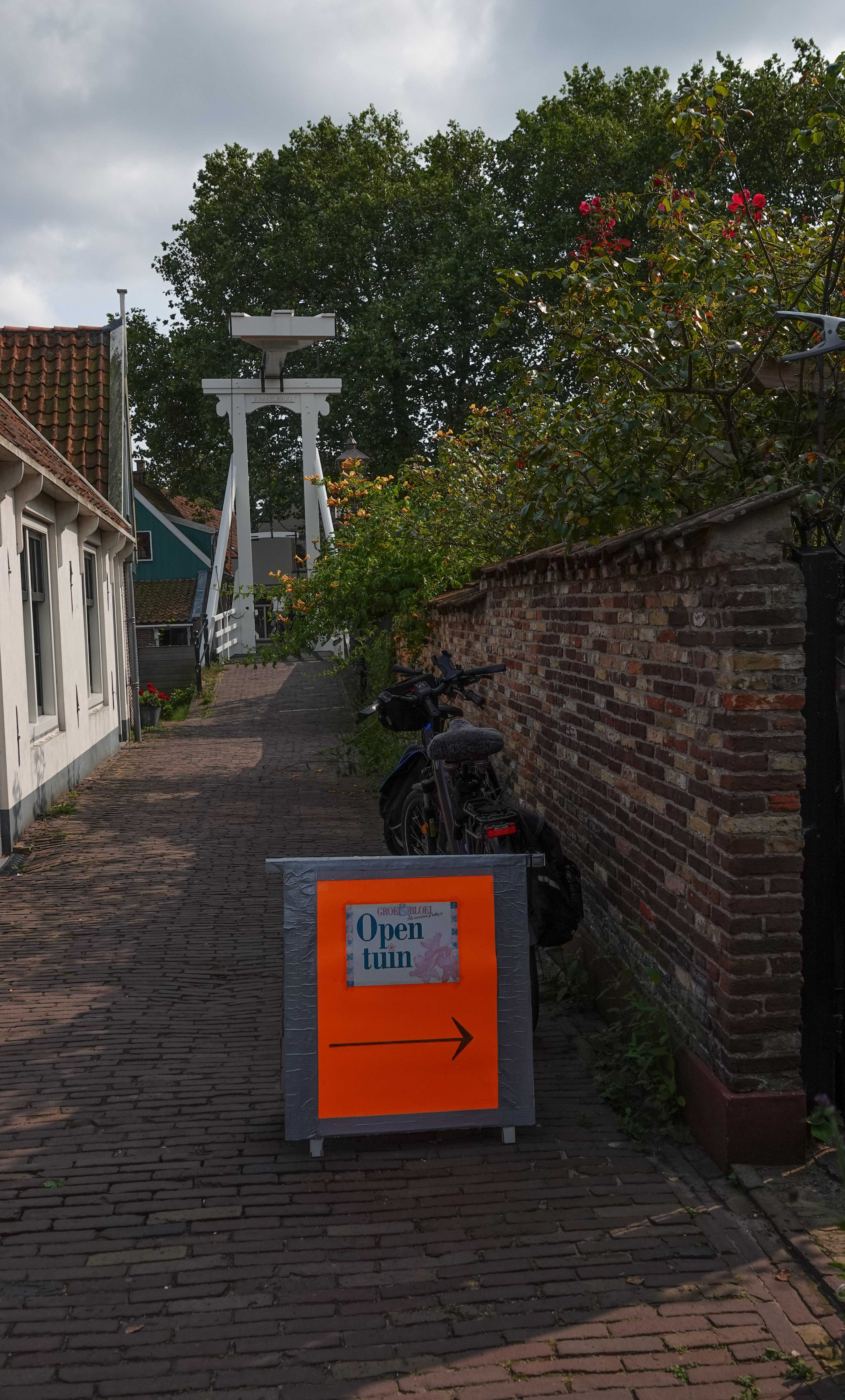 Stadstuin 2 ligt achter een 17e eeuws woonhuis middenin Edam. De poort zit in een oude muur in een klein steegje., dat ook naar een ophaalbrug leidt, die nog handmatig bediend wordt.