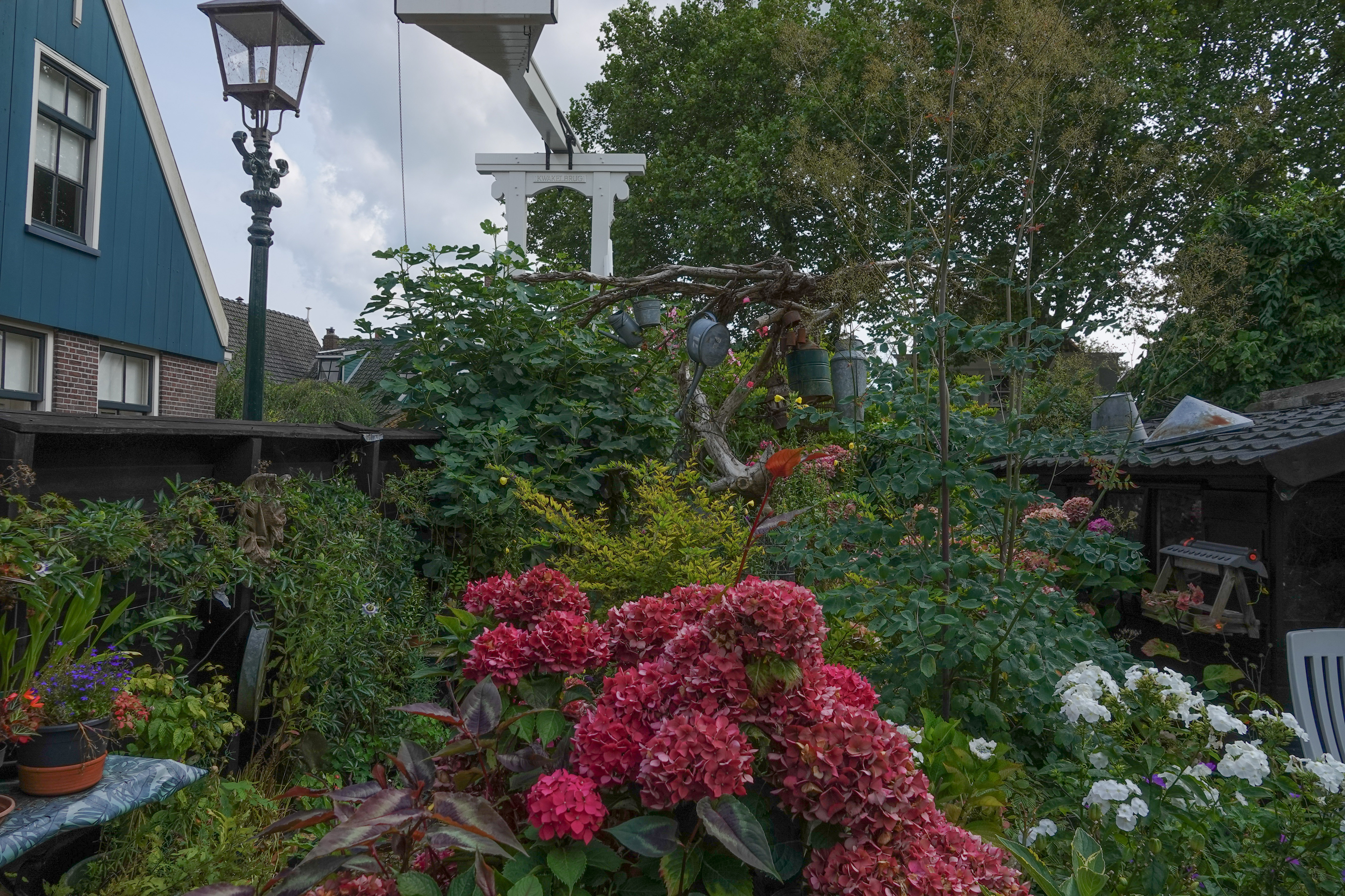 Na de eerste tuin hadden we de smaak te pakken. In Edam waren nog twee tuinen open, dus wij fietsten 10 km verderop. Bij Jim en Betty werden we gastvrij ontvangen in hun stadstuin van 300 m2 groot.