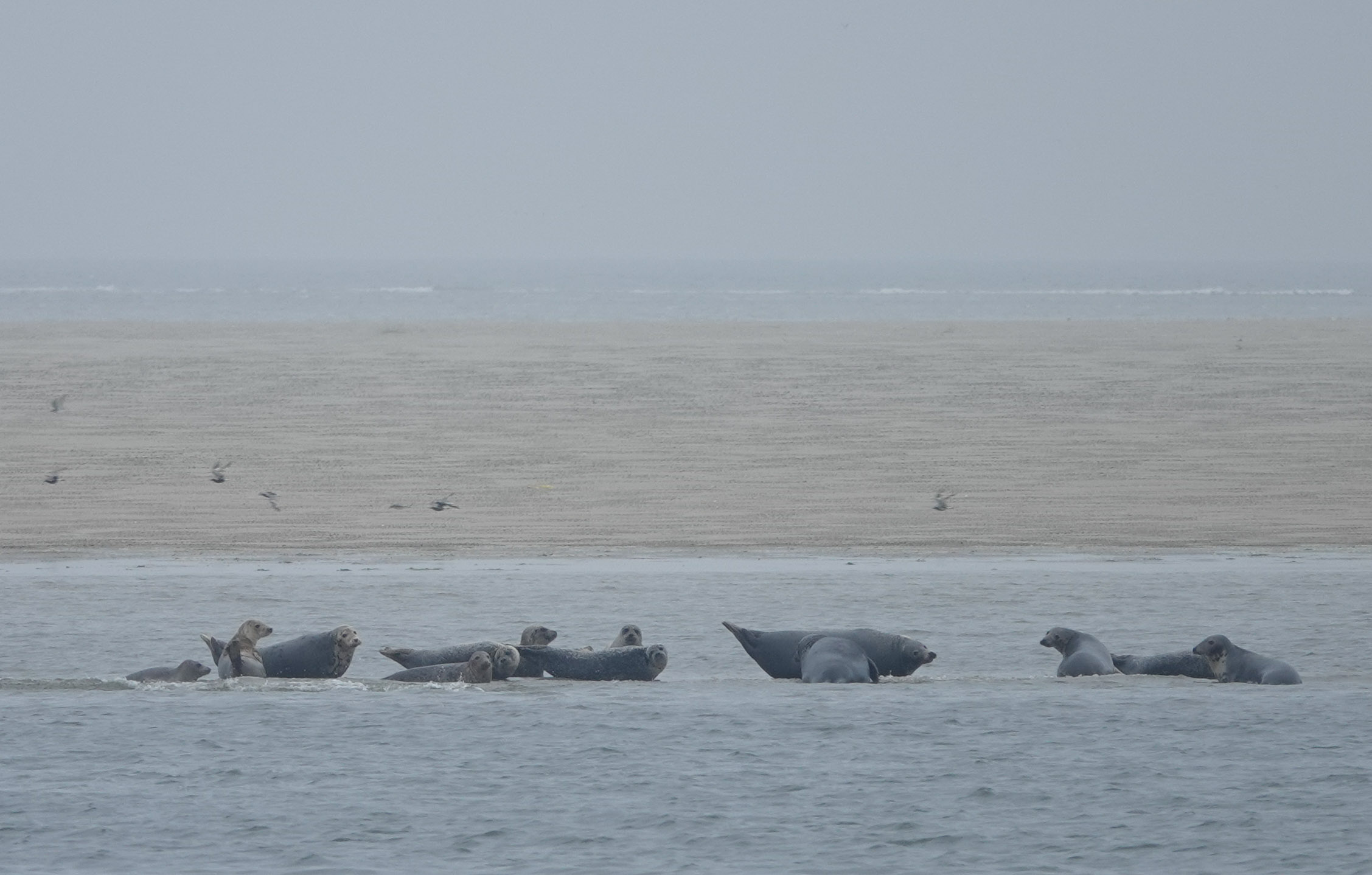 Onderweg zagen we zeehonden rusten op de zogenaamde Steenplaat en er zwommen wat losse exemplaren in zee.