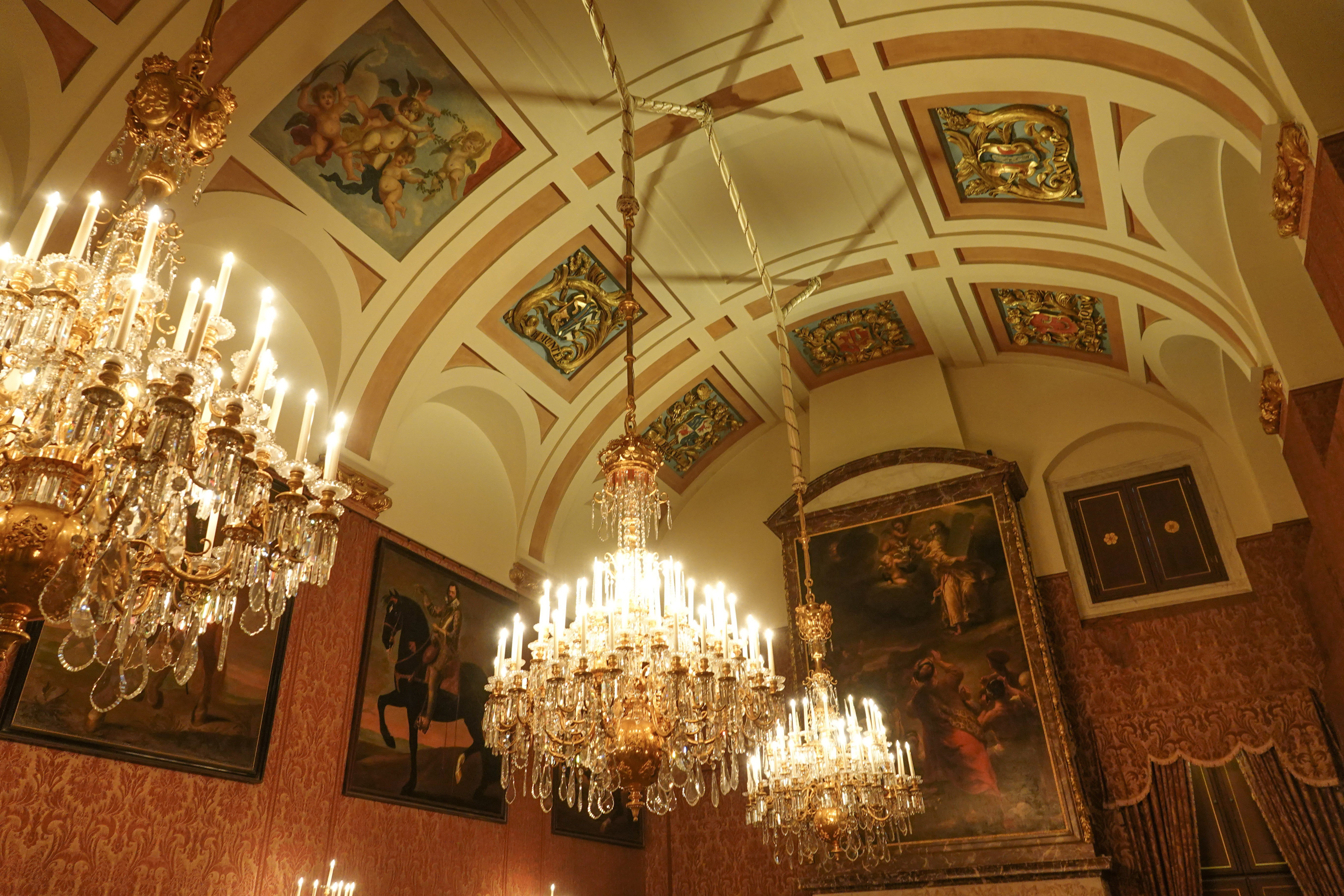 Alleen al die kroonluchters, wat een pracht en praal. Persoonlijk hou ik daar niet van maar dat is voor een deel ook de historie van ons land.