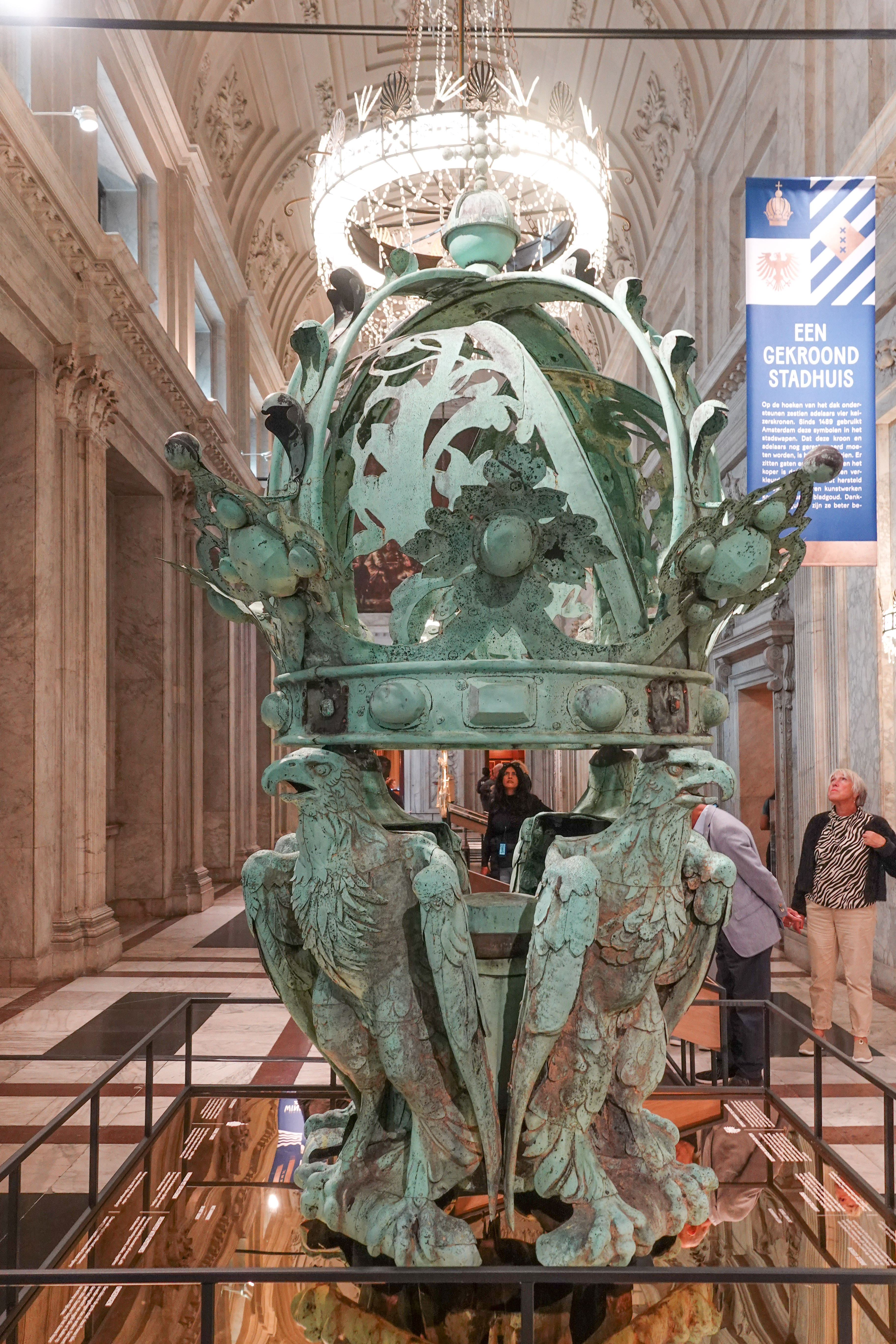 Op de hoeken van het dak ondersteunen 16 adelaars vier keizerskronen. Deze kroon moet duidelijk nog gerestaureerd worden. Uiteindelijk gaat hij ter extra versteviging ook nog verguld worden.