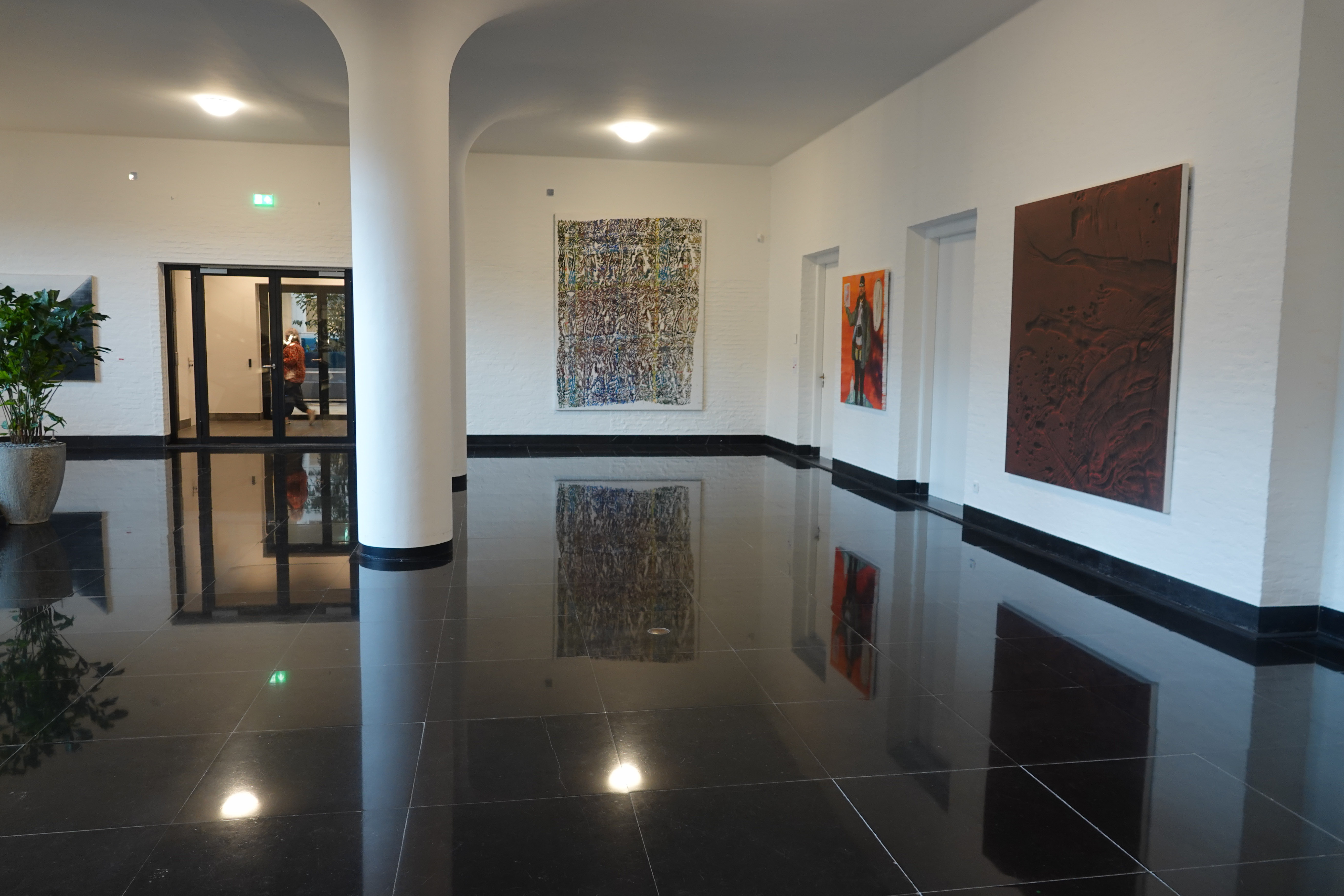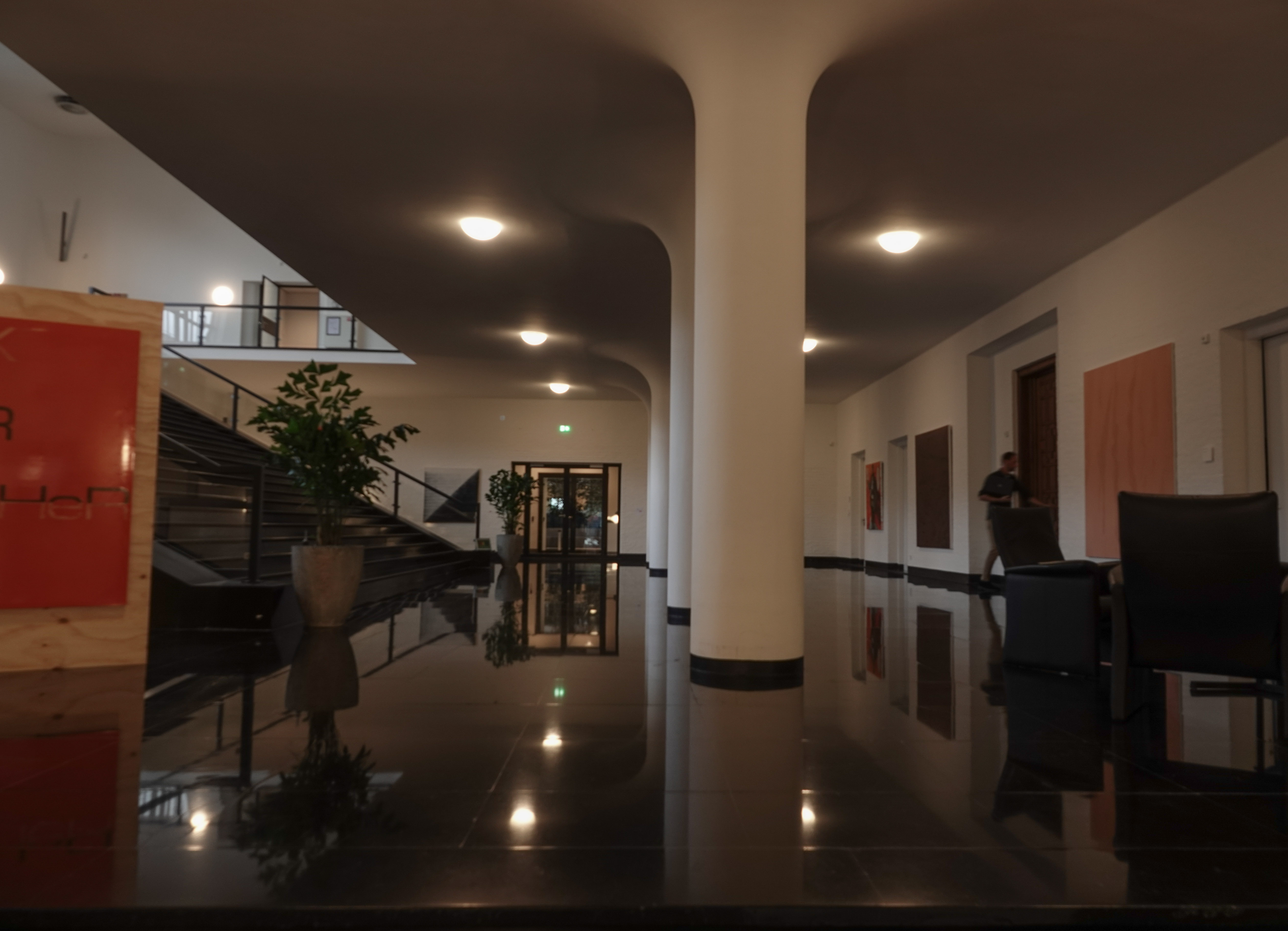 De trouwzaal was in een gebouw van architect Frits Peutz, een begrip in Limburg en omstreken. Hij bouwde ook het Glaspaleis, een Heerlens monument. Helaas stond het Raadhuis nu net in de steigers,